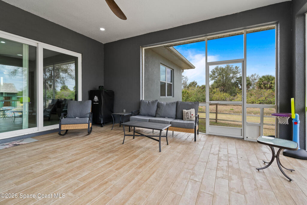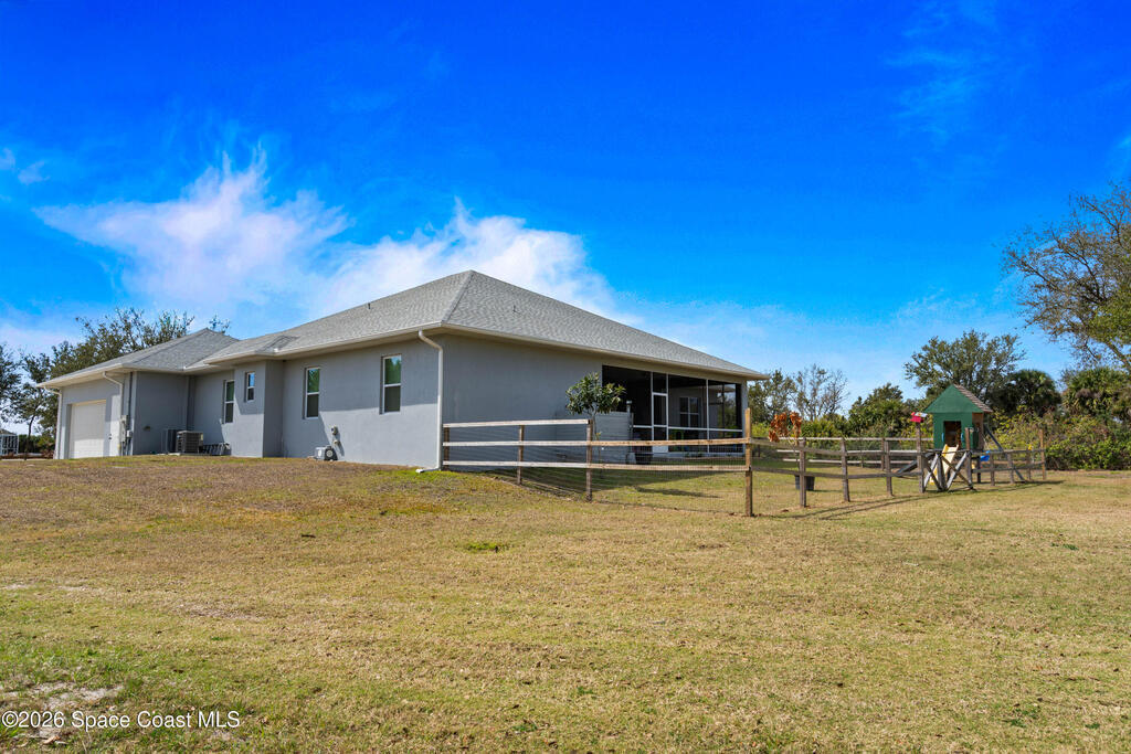 Nestled within the sought-after Deer Run community, this exceptional 2023 custom-built estate offers a rare blend of modern luxury and serene country living. Set on 2.75 acres, this five-bedroom, three-bathroom residence spans over 2, 800 square feet of thoughtfully designed space, surrounded by natural beauty and frequent visits from deer and native wildlife.From the moment you enter, refined craftsmanship is on full display. Expansive open living areas are framed by 8-foot doors throughout, impact-rated windows and doors, and stunning wood-look tile flooring that flows seamlessly from room to room. Built with spray foam insulation and equipped with dual A/C units, the home delivers superior energy efficiency and year-round comfort.The split floor plan offers both privacy and functionality, ideal for hosting guests or accommodating multi-generational living. The heart of the home opens effortlessly to an oversized screened-in lanai, creating a peaceful retreat to enjoy morning coffee