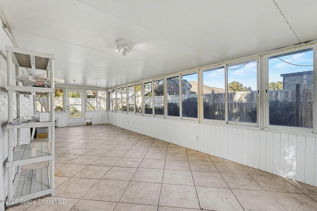 Enjoy the Florida sunshine year-round! This well-maintained 2-bedroom, 2-bathroom home is nestled in the desirable Port Malabar Country Club community (NO HOA ) & offers an impressive 2, 479 square feet of living space on a spacious 0.32-acre lot with mature trees. The generous floor plan allows for a 3rd bedroom if desired. The open & inviting interior features tile flooring throughout, a cozy wood-burning fireplace, an indoor laundry room, & an attached 2-car garage offering plenty of parking and storage. Major upgrades have already been completed: NEW roof (2021), AC system (2020), & a brand-new water heater (2024). Step outside to a fully fenced backyard, perfect for privacy, pets, or outdoor gatherings. A separate storage shed for tools, hobbies, or equipment. Just minutes away from Palm Bay Marina, Pollak Park, Castaway Point Park, Turkey Creek, & a short drive to the beach! Seller is willing to provide a credit toward exterior painting and a recent 4-point inspection report!