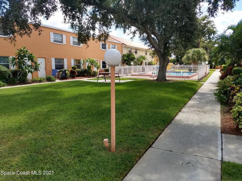 Island living! Great location at an affordable price. Very cute townhome style 2/1.1 condo located in the heart of Merritt Island. Main living area with tiled floors and a half a bath on ground floor. Upstairs 2 berooms with wood floors and a full bathroom. Central garden with beautiful trees and community pool. Stepping into your home you will have the feel of a townhome for the price of a condo. And all this at a walking distance from entertainment, restaurants, and shopping. Easy drive to Kennedy Space Center, Space X, Blue Origin, Boeing and just a hop over Hwy 520 to Orlando or the beach. Ready to move in. Friendly community. Only one small pet aloud 15 lbs or under & No exotic animals allowed per HOA rules. Please note: tenants must be approved also by the HOA.