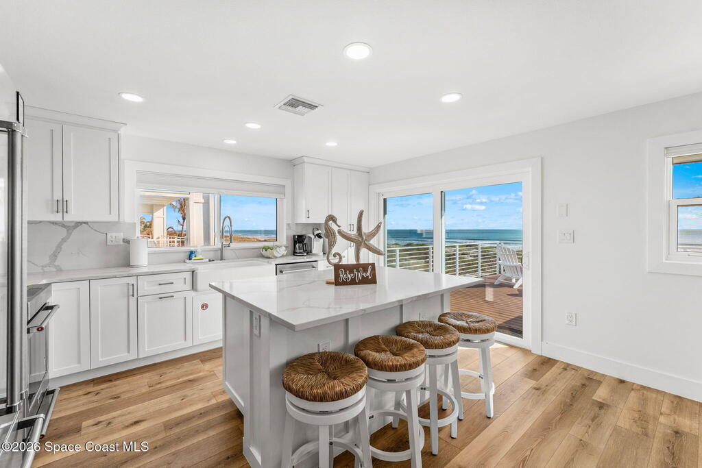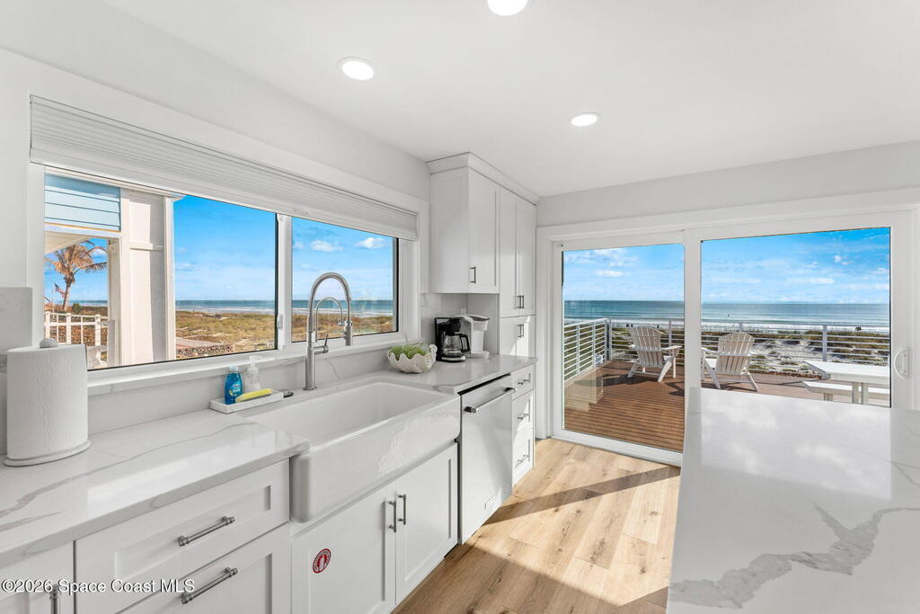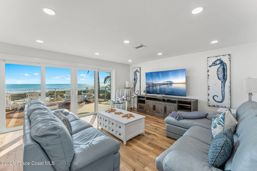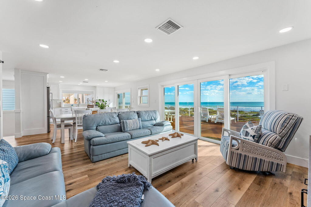 Imagine waking up to the sound of waves rolling onto the shore and stepping out onto your balcony with a cup of coffee while the sun rises over the Atlantic. Life at this oceanfront Cocoa Beach home is exactly that kind of effortless coastal lifestyle people dream about but rarely find.Located in the heart of Cocoa Beach, this fully remodeled oceanfront retreat offers 4 bedrooms, 4.5 bathrooms, and over 3, 400 square feet of thoughtfully designed living space. From the moment you come inside, the open layout pulls your attention straight to the sweeping ocean views. Large hurricane-rated windows and doors frame the water, filling the home with natural light and constant reminders that the beach is your backyard.The home was extensively updated, giving buyers peace of mind and modern comfort. A tile roof installed in 2021, updated plumbing and electrical systems, a newer HVAC, and a tankless hot water heater ensure the home runs efficiently while maintaining a luxurious feel
