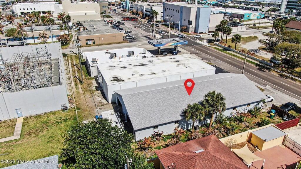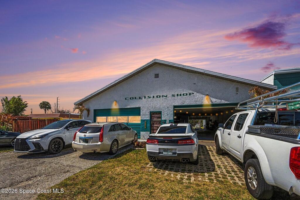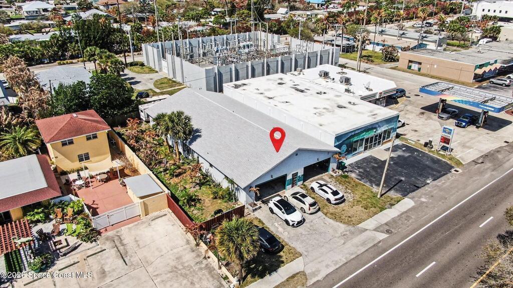 Prime opportunity to own commercial real estate in Cocoa Beach. Two blocks from the ocean and steps to downtown. This approximately 5, 000 SF concrete block building features a newer roof, four roll-up doors, and on-site living quarters, creating a flexible live/work commercial property.Currently operating as the only auto body shop in Cocoa Beach, offering an immediate owner-operator opportunity. All tools and machinery convey, allowing a seamless transition. A public alley provides convenient rear drive-up access, ideal for automotive, service, or light industrial use.Zoned TC - Town Center, supporting retail, restaurant, office, residential, hospitality, and mixed-use development. If an auto body shop is not your vision, the property offers limitless possibilities for redevelopment or repositioning in one of the most desirable commercial locations in Cocoa Beach. Allowable height up to 45 feet adds strong future development potential with excellent visibility and steady traffic.