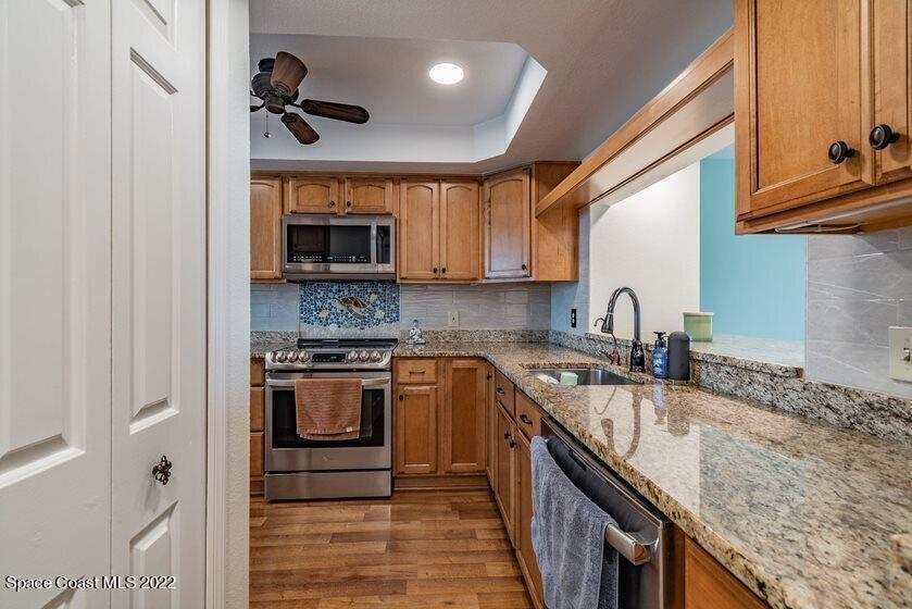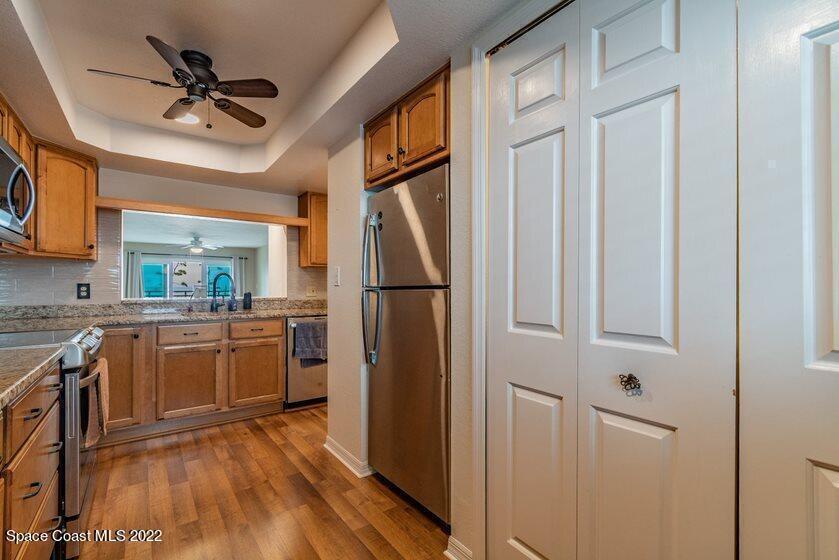 DIRECT OCEAN VIEW in downtown Cocoa Beach with parking spot in under building garage! Nicely upgraded with new flooring, granite countertops, stainless-steel appliances and custom bathrooms. Downtown location close to shops, restaurants and everything Cocoa Beach has to offer.