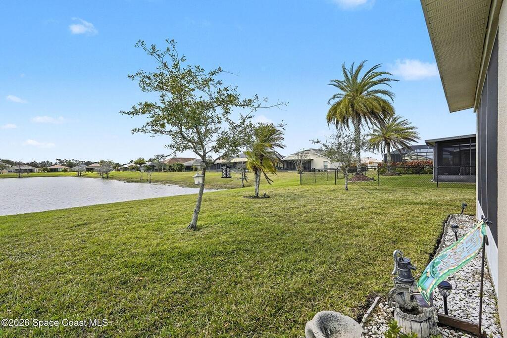 Enjoy stunning lakefront views in this beautiful 3-bedroom, 2-bath home located in the highly sought-after Heron Bay at Waterstone in Southeast Palm Bay. This well-designed floor plan features tile flooring throughout and a fully equipped kitchen with a convenient breakfast bar. The home includes a 2-car garage for added storage and convenience, along with a large screened rear porch with vinyl windows--perfect for relaxing while taking in peaceful lake views and local wildlife. The light and airy primary bedroom offers great water views, a walk-in closet, and a spacious walk-in shower, creating a comfortable private retreat .Well maintained, the property offers fresh exterior paint and a new A/C system in 2025 along with a newer roof in 2020, providing peace of mind for years to come. Residents enjoy access to outstanding community amenities, including a resort-style pool, clubhouse with fitness center, tennis courts, playground, and basketball court.