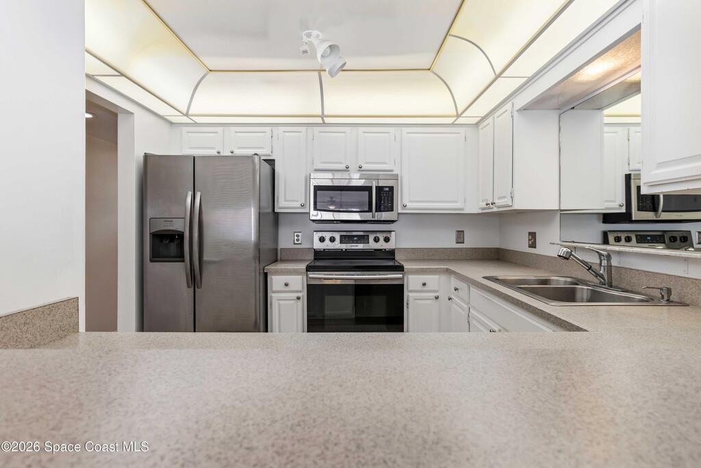 Step into paradise with expansive Direct River Views, stunning sunsets, & only 3 blocks from the beach! This bright and spacious 2 bedroom, 2.5 bath condo features an open layout, a large balcony with hurricane shutters, and a convenient storage closet for your pool/beach toys. Both bedrooms offer walk-in closets and private en-suite bathrooms, providing comfort and privacy for family and guests alike. The kitchen has stainless steel appliances, updated countertops & plenty of storage. Community amenities include a pool, sauna, fishing dock, car wash area, secure lobby & underground owner parking. It's easy to embrace the Florida lifestyle with sea breezes, sunsets and rocket launches all from the comfort of this home. Whether you're looking to blend in with the locals & become one yourself or a coastal getaway, this Cocoa Beach condo has it all.