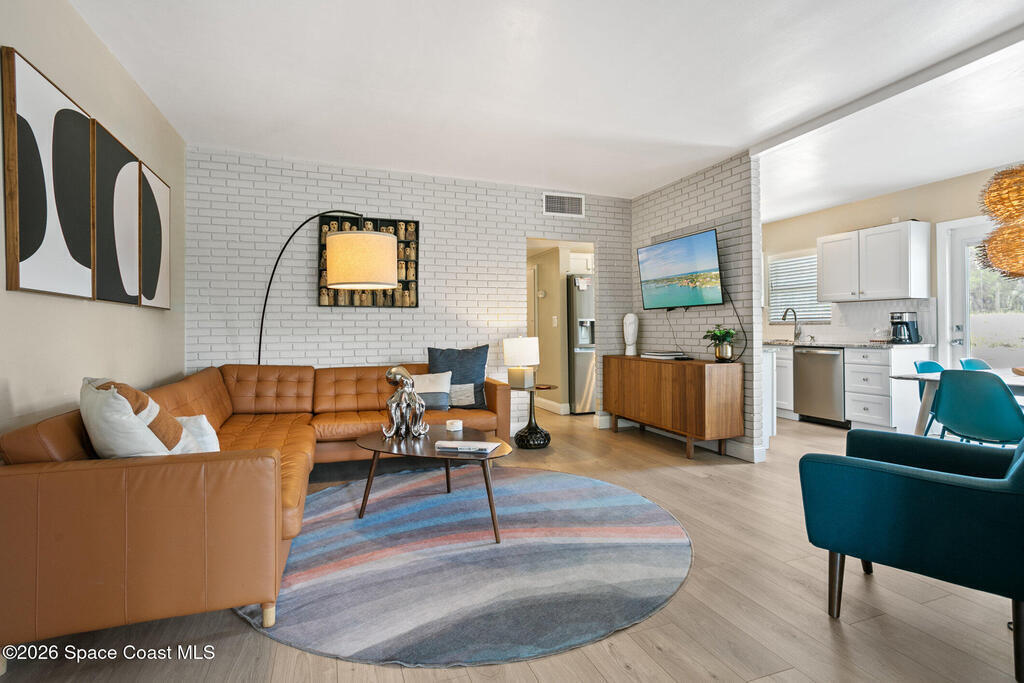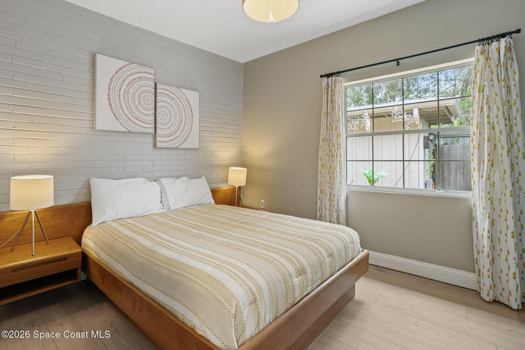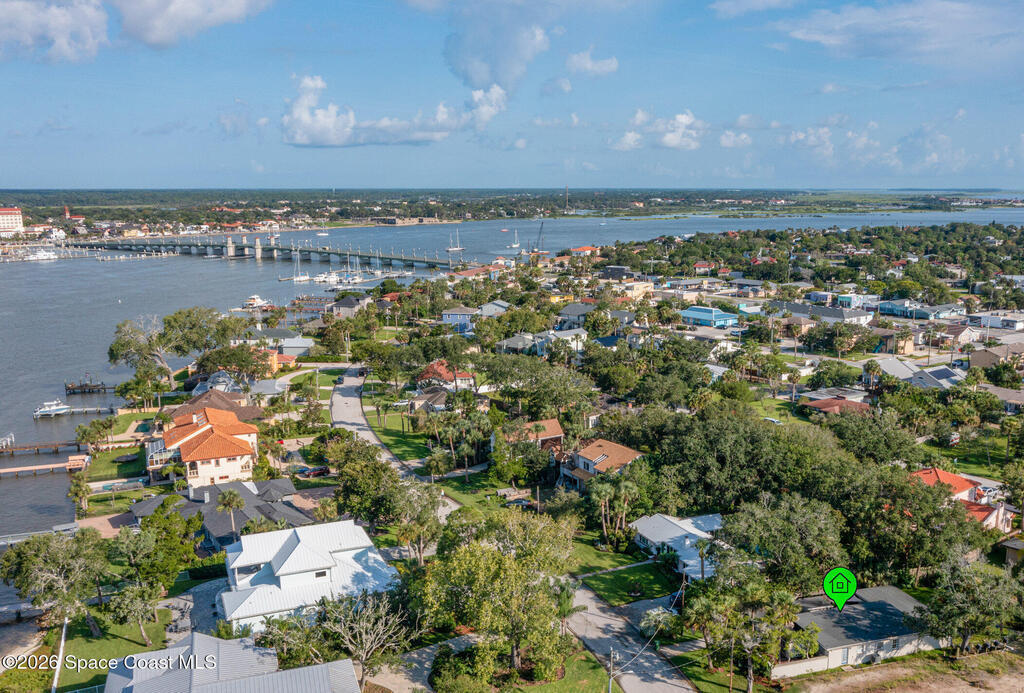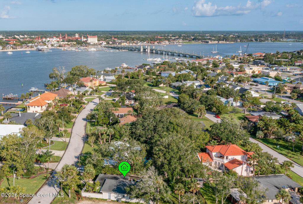 Welcome to this recently renovated mid-century modern home in one of the most desirable locations on Anastasia Island. Ideally situated just a short walk to the Bridge of Lions and historic downtown St. Augustine, this home offers the rare combination of walkability to restaurants, shops, and waterfront attractions--while enjoying the peace and quiet of a residential neighborhood with easy parking.Thoughtfully renovated and designed by its architect owner, the home blends classic mid-century charm with updated finishes and curated designer touches throughout. Palm trees and coastal breezes enhance the relaxed island setting, and the waterfront is just across the street.A walled and gated front entry garden creates a private and welcoming approach. Inside, you'll find light-filled living spaces and a spacious primary suite addition featuring a large bedroom, sitting/desk area, modern bath, and direct access to a beautifully landscaped central courtyard.The private courtyard serves