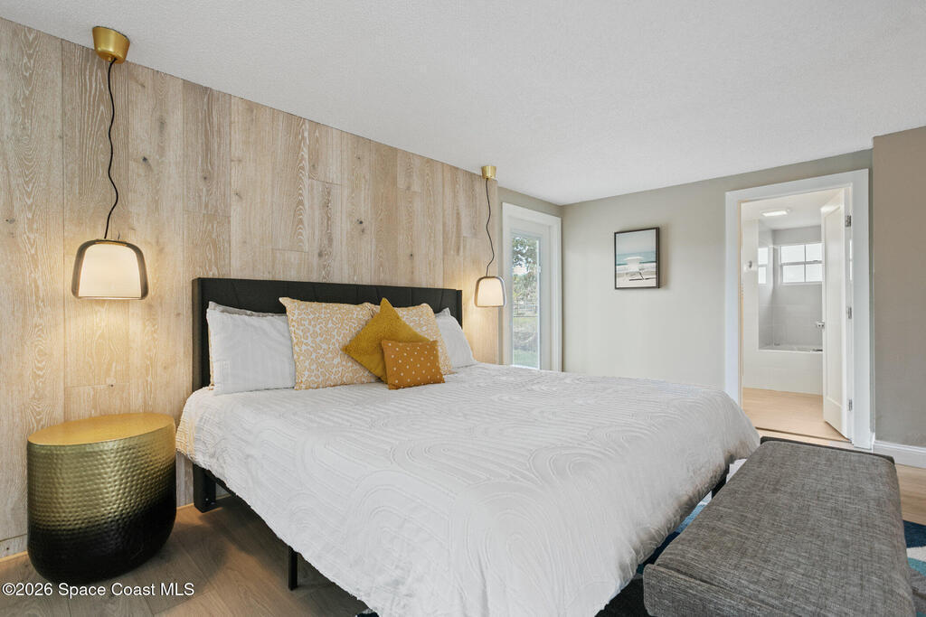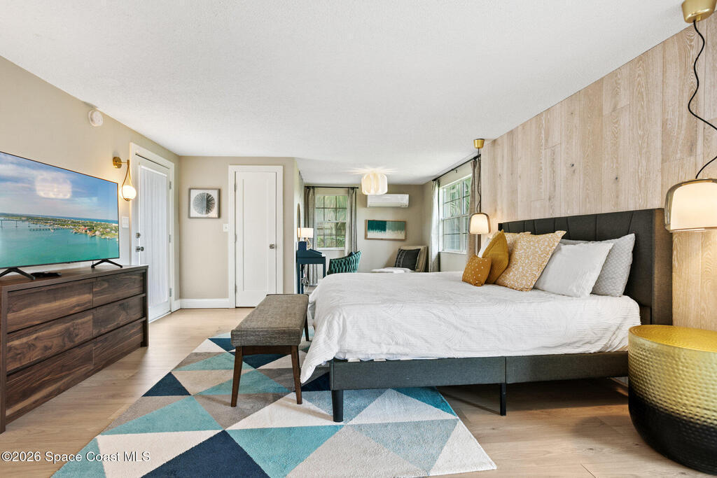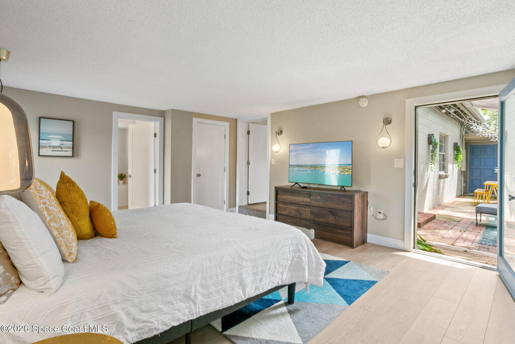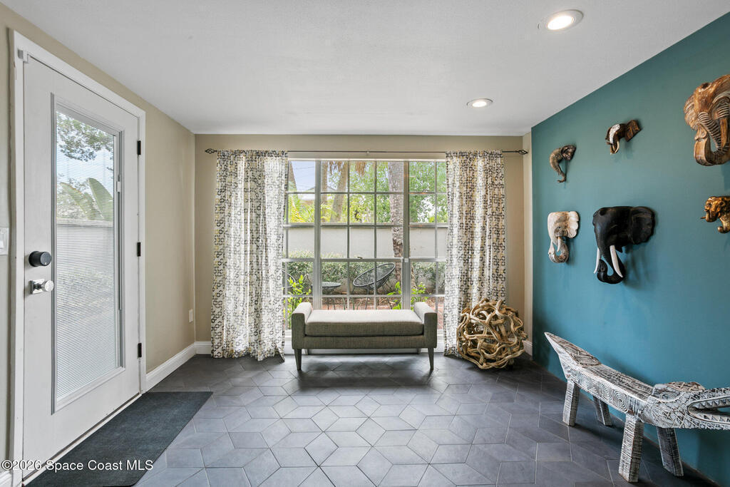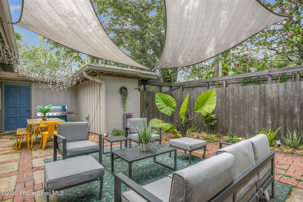 Welcome to this recently renovated mid-century modern home in one of the most desirable locations on Anastasia Island. Ideally situated just a short walk to the Bridge of Lions and historic downtown St. Augustine, this home offers the rare combination of walkability to restaurants, shops, and waterfront attractions--while enjoying the peace and quiet of a residential neighborhood with easy parking.Thoughtfully renovated and designed by its architect owner, the home blends classic mid-century charm with updated finishes and curated designer touches throughout. Palm trees and coastal breezes enhance the relaxed island setting, and the waterfront is just across the street.A walled and gated front entry garden creates a private and welcoming approach. Inside, you'll find light-filled living spaces and a spacious primary suite addition featuring a large bedroom, sitting/desk area, modern bath, and direct access to a beautifully landscaped central courtyard.The private courtyard serves