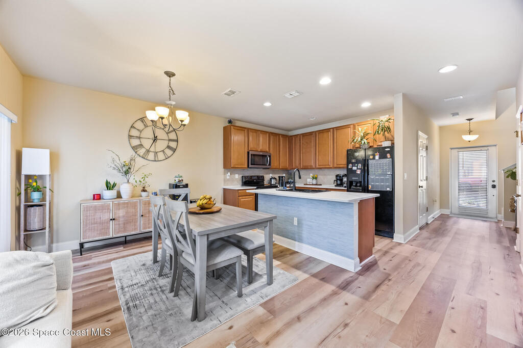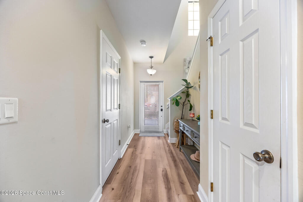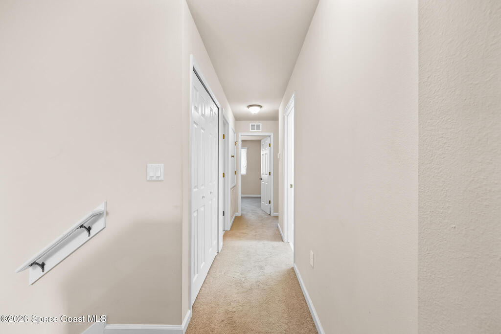 Move-in ready 3-bedroom, 2.5-bathroom townhouse in the highly desirable Meadow Pointe community. Roof 2023 and AC 2018. This townhome offers just under 1, 500 square feet of living space. The kitchen features a large island, solid wood cabinets, and ample storage, seamlessly flowing into the dining and living areas. Laminate flooring runs throughout the lower level, while the upstairs features carpet with tile in the bathrooms and laundry room.The spacious primary suite includes two large walk-in closets and an en-suite bathroom with a double sink. The laundry room is conveniently located upstairs, and the washer and dryer are included! Additional features include an attached one-car garage and storm shutters for added protection.The community offers a sparkling pool, and the HOA covers cable, internet, lawn care, exterior building maintenance, roof replacement, common area insurance, and pest control. Located just minutes from shopping, restaurants and other local amenities.