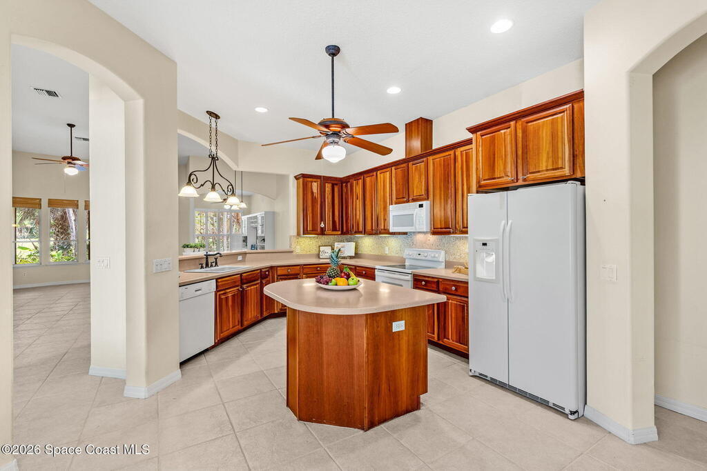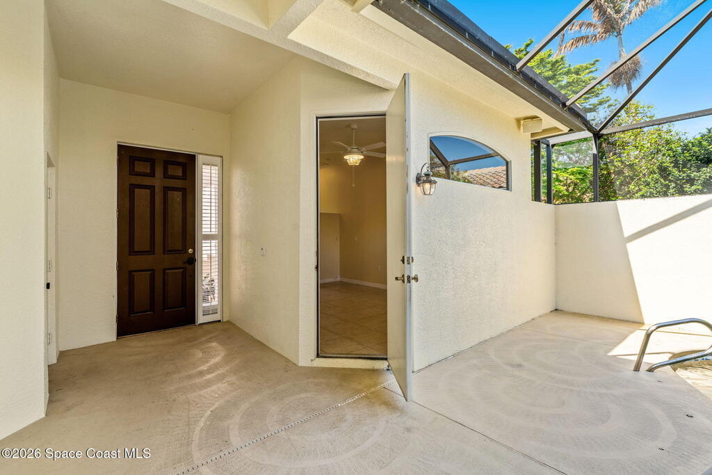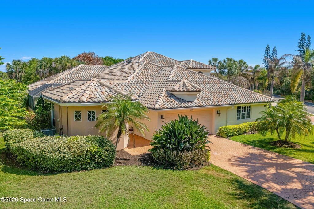 Experience the rare courtyard pool lifestyle at this beautiful home set along the 11th Fairway in Aquarina Beach & Country Club. This unique design centers around a private courtyard where the pool becomes the heart of the home, with every major room opening to this sunlit, secluded space. One of the highlights is the ''Casita, '' a separate guest suite or office space that caters to privacy and flexibility. Each bedroom presents serene vistas of the courtyard, where the pool awaits. Inside, the home features all-tile flooring and an updated kitchen. A NEW TILE ROOF adds peace of mind. Beyond the courtyard, the backyard offers golf course views and a peaceful, open feel. Located in a gated coastal community with deeded ocean access, river access with boat launch and storage, a beach clubhouse, and optional golf and tennis memberships, plus lawn and landscaping included for low-maintenance living. A rare blend of privacy, views, and resort-style amenities