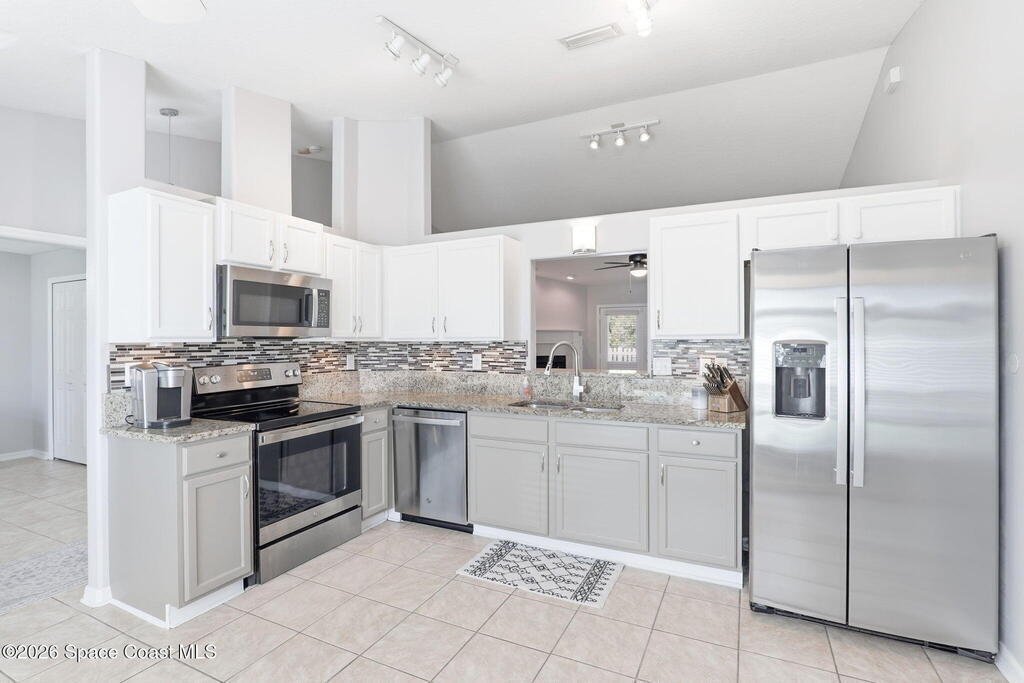 Homes with this level of privacy rarely become available in St. Michels Village. This 3-bedroom, 2-bath home with a 2-car garage sits on what is widely considered one of the most desirable lots in the neighborhood, backing to a peaceful lake and natural preserve with no rear neighbors. The fenced backyard creates a private retreat perfect for relaxing or entertaining. Enjoy Florida living year-round from the large screened porch with truss roof, allowing you to enjoy the outdoors even during rainy days. Inside, vaulted ceilings create a spacious feel in the main living area featuring a cozy wood-burning fireplace. The kitchen offers granite countertops, newer stainless steel appliances, breakfast nook, and generous pantry space. Tile flooring runs throughout with no carpet. Major updates include impact-rated windows, a 2019 roof, and a 2022 A/C. Located just minutes from Murrell Rd, Viera, US-1, shopping, dining, and everyday conveniences, this home delivers the rare combination of pri