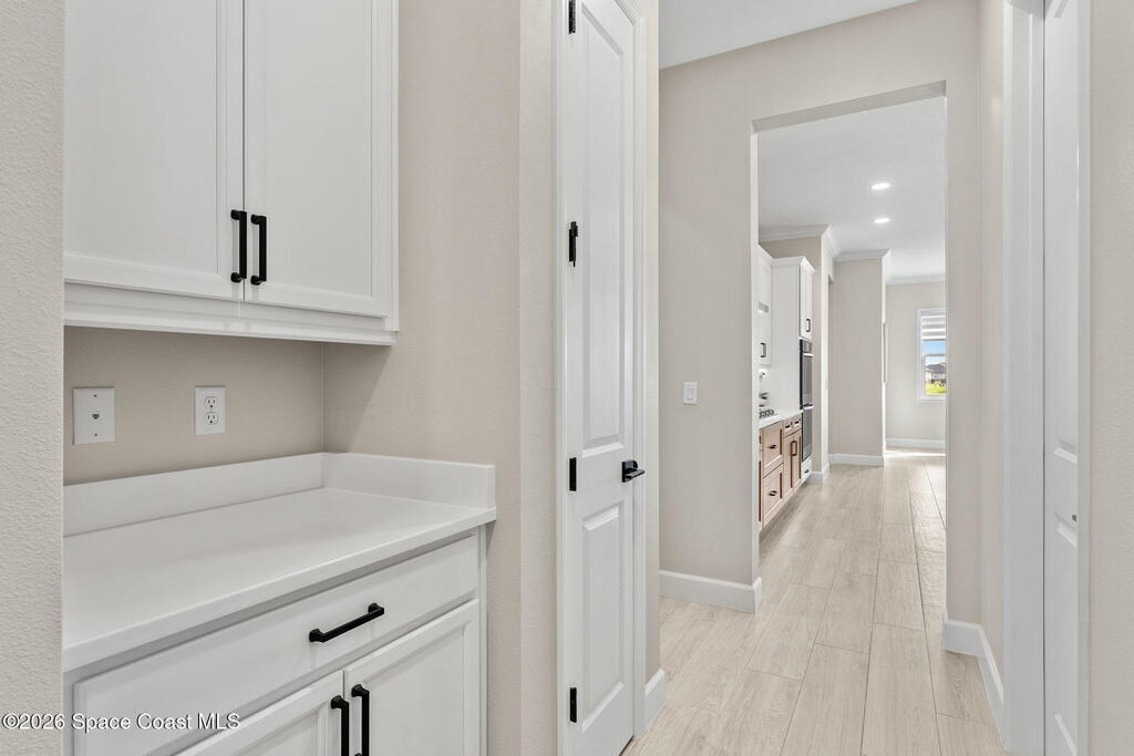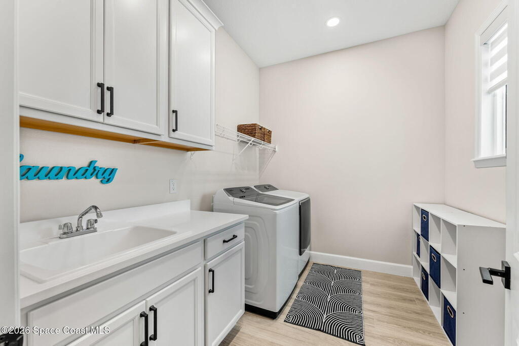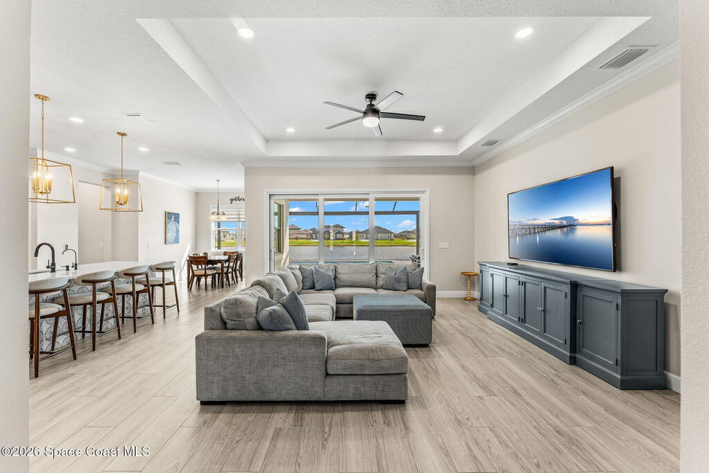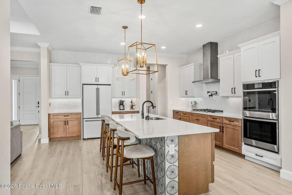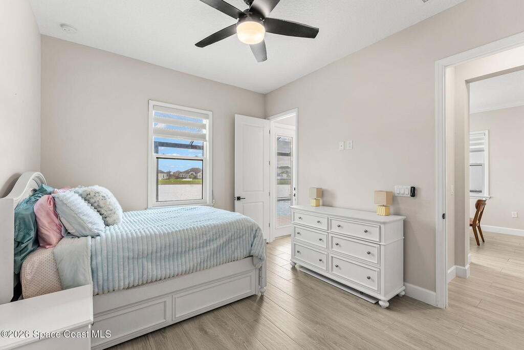 Experience refined living in the gated Laurasia community of Viera, a premier golf cart-friendly neighborhood celebrated for its elegance and convenience. This stunning two-story home offers 5 bedrooms, 4.5 baths, and a side-entry 2-car plus golf cart garage. The open-concept design centers around a gourmet kitchen featuring Level 5 cabinetry, quartz countertops, a pot filler, and a reverse osmosis system. Relax or entertain in the panoramic screened pool area, complete with shell lock pavers for slip-resistant style and fully automated Hayward pool controls for effortless enjoyment. The luxurious primary suite includes a spa-like bath with soaking tub and separate shower. Additional upgrades include a tankless natural gas water heater for endless efficiency. Zoned for A-rated Viera Elementary, Middle, and High School, this home blends exceptional craftsmanship with the vibrant Viera lifestyle.