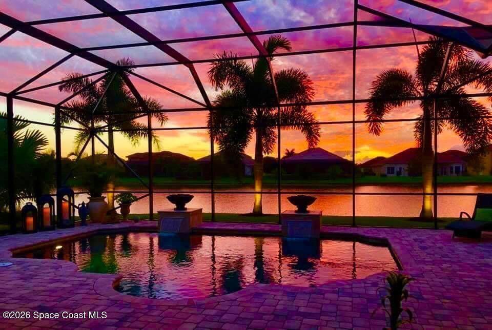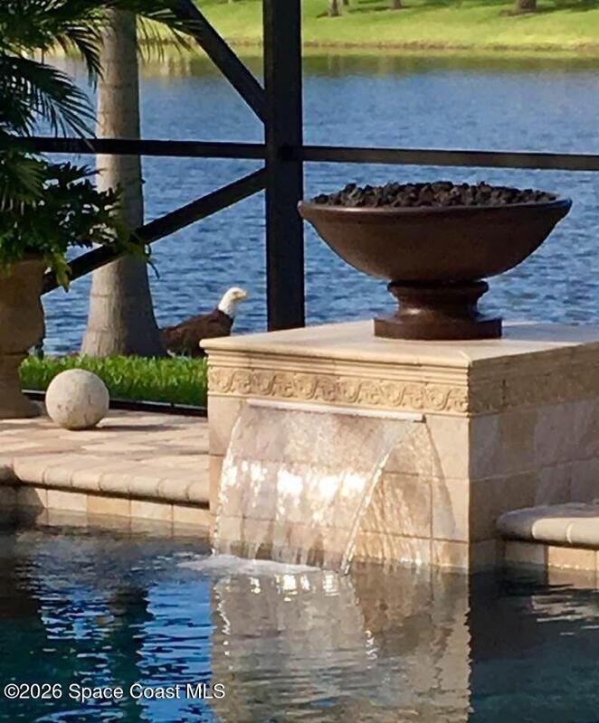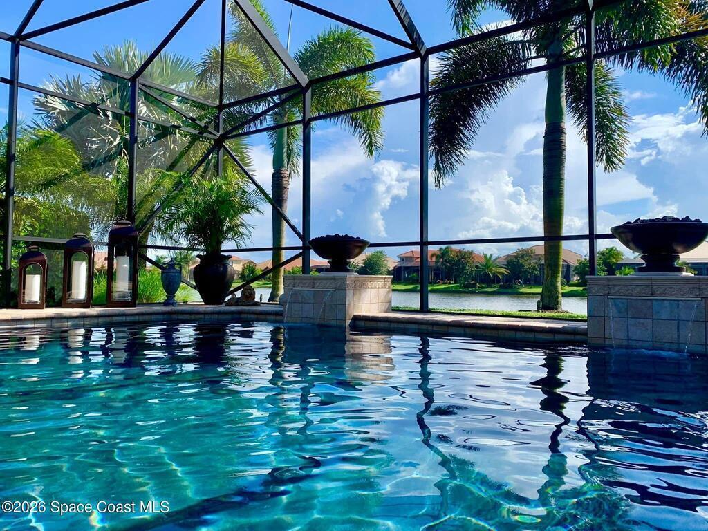 One of the most special homes in Viera has come to market for the first time ever. This home was custom built by one of Brevard's premier builders, and each phase of construction was meticulously monitored by the owner. The front of the home boast stacked stone accents, crown molding, corbels, and a raised covered entry framing the stunning Abbey Doors. Enter to a grand foyer defined by a tray ceiling w/crown molding & 2 decorative chandeliers. The view from the foyer is across the great room to the pool and lake beyond. The semi formal dining rm w/tray ceil. and double crown molding is illuminated by 2 recessed lights plus a beautiful chandelier. As you transition from the dining rm to the kitchen area you'll pass the built-in wine rack. The kitchen is the heart of the home, and this home has a lot of heart! Loads of beautiful cabinetry, some w/glass inserts and illuminated, extra deep drawers, a 5 burner gas cooktop with a stacked stone wall. Please click more.