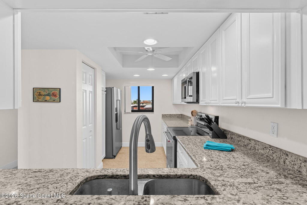 OCEANFRONT- COMMUNITY POOL/HOT TUB- ENCLOSED GARAGE SPACE- 2nd floor condo with 2 bedrooms and 2 full bathrooms. UPDATED-MOVE IN READY- This condo includes a wide layout with expansive ocean views from the living room, the primary bedroom and a long and wide balcony. Beautiful tile flooring throughout, updated kitchen and bathrooms. New kitchen appliances, walk in closet.1 pet under 30 pounds allowed and 1 month minimum rental restriction.Milestone Inspection, SIRS, and repairs have been completed.Association amenities include a pool, deeded beach access, barbeque area, clubhouse, car wash area, fitness center, sauna, tennis and pickleball courts and more.Conveniently located near the Cocoa Beach Pier, Viera, Vero Beach, Brevard Zoo, the Space Center, Melbourne and Orlando International Airports, dining and shopping, golfing, Disney World, and other world class attractions.This property is great for a full time residence, a vacation home, or an investment property.