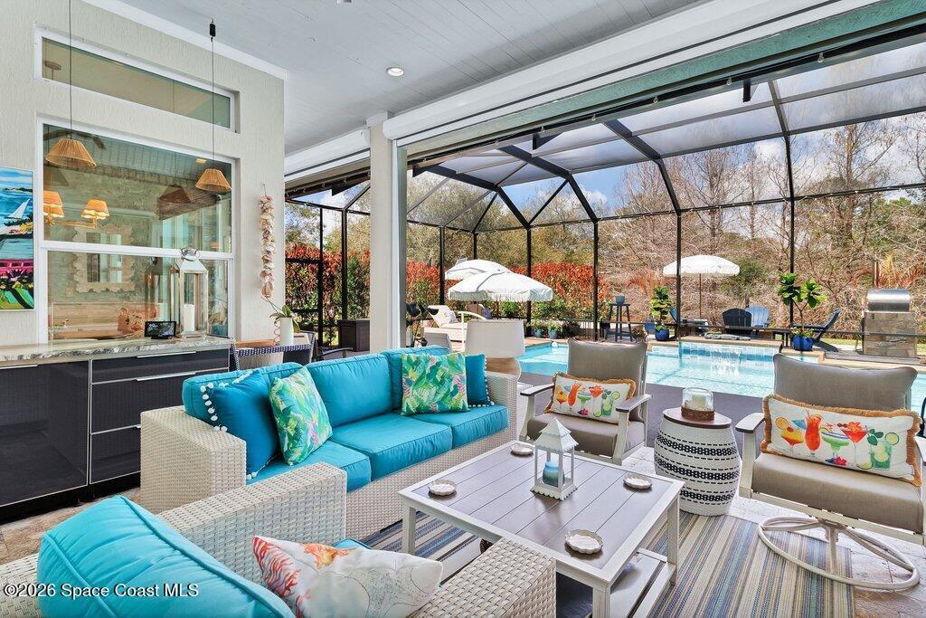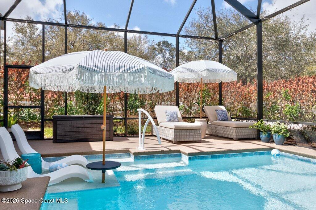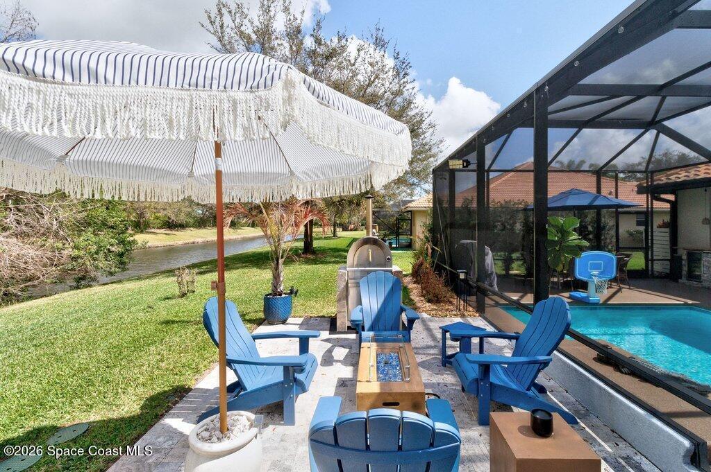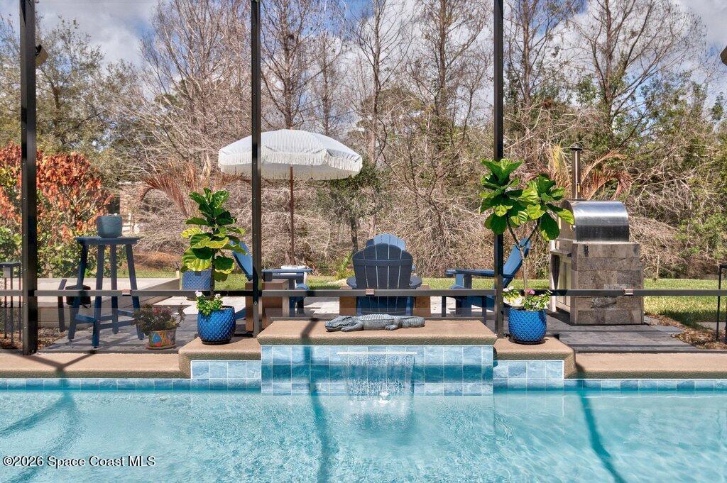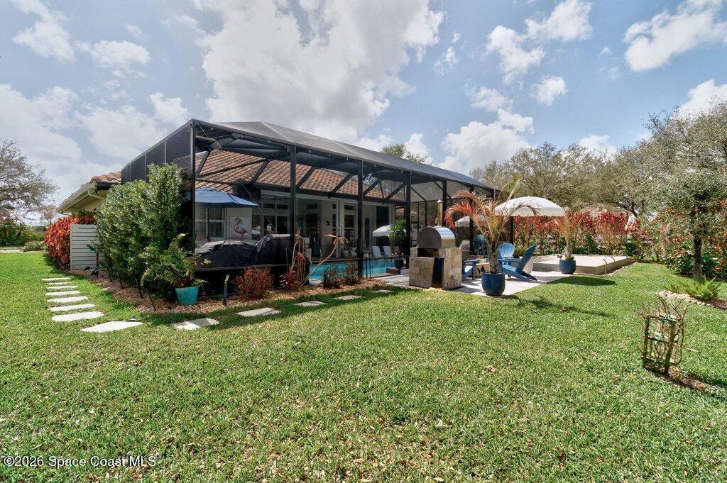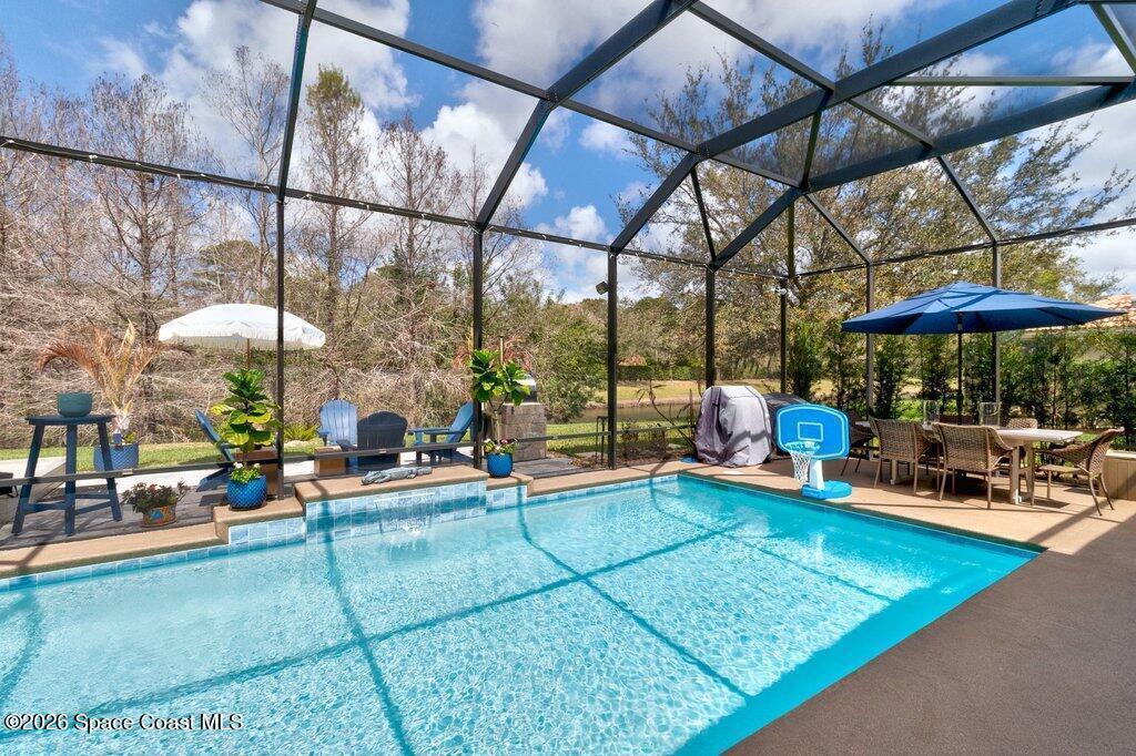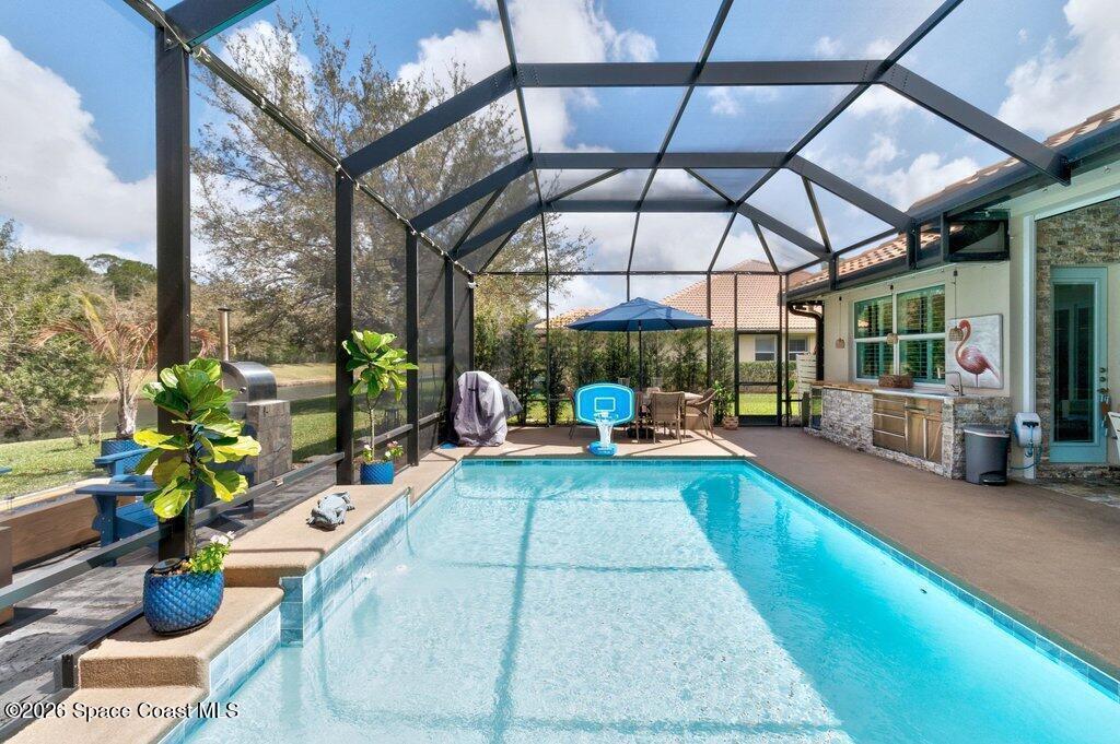 Step into this beautifully appointed 3 Bed, 3 Bath + FLEX home offering 2, 522 sq ft of refined living in a thoughtfully designed GHO home. Every detail reflects comfort, craftsmanship & an elevated lifestyle. Beyond the doors, an exclusive private outdoor retreat awaits. The solar-heated saltwater pool is framed by a covered & extended lanai w/ elegant travertine floors, creating a sophisticated setting for relaxing or entertaining. An outdoor kitchen & authentic outdoor pizza oven make hosting effortless. Set on .34 acres of beautifully curated grounds, the property continues to impress with a private bocce ball court, extended paver driveway, covered front entry and a 2.5-car garage w/epoxy floors. Check out the catch and release fishing pond. Upscale landscaping enhances the sense of privacy and exclusivity throughout. This is more than a home--it's a distinctive lifestyle property designed for those who appreciate quality, privacy & resort-style living.