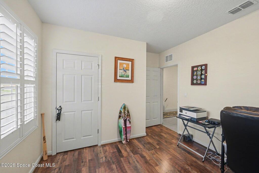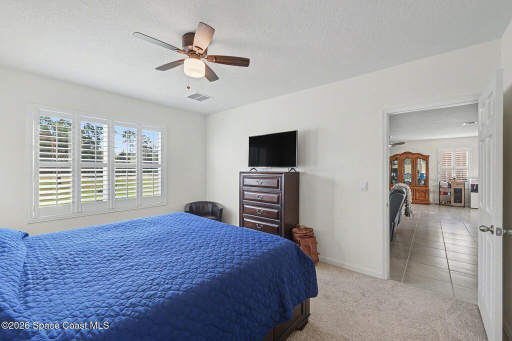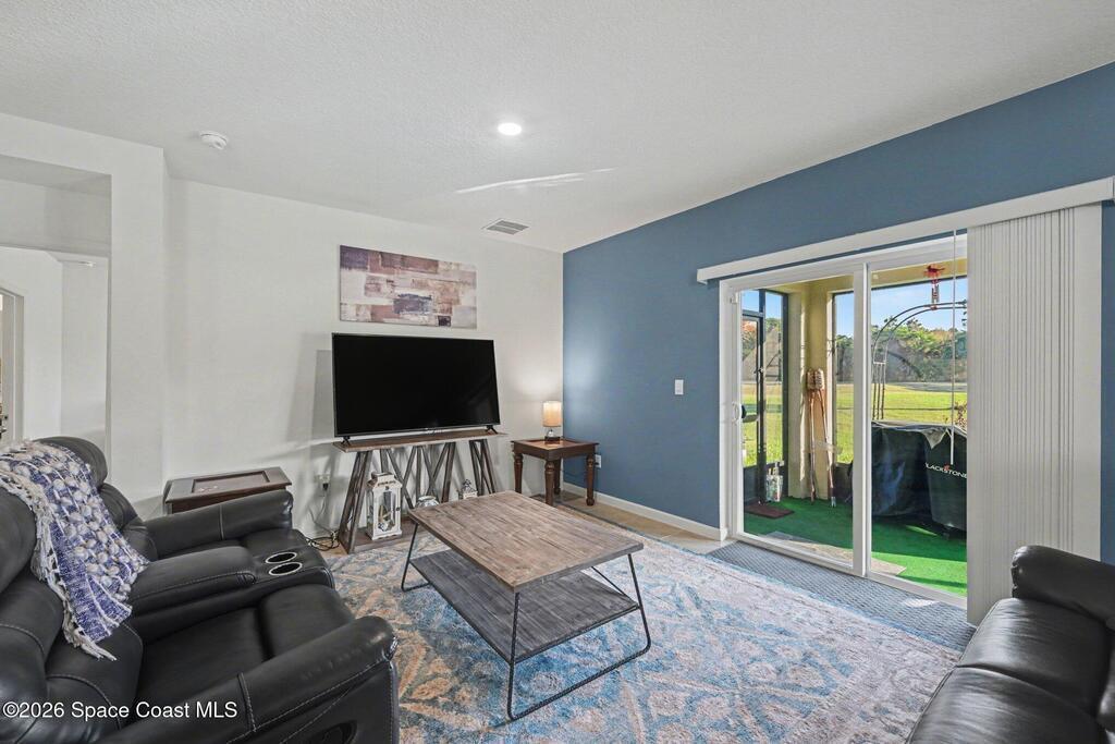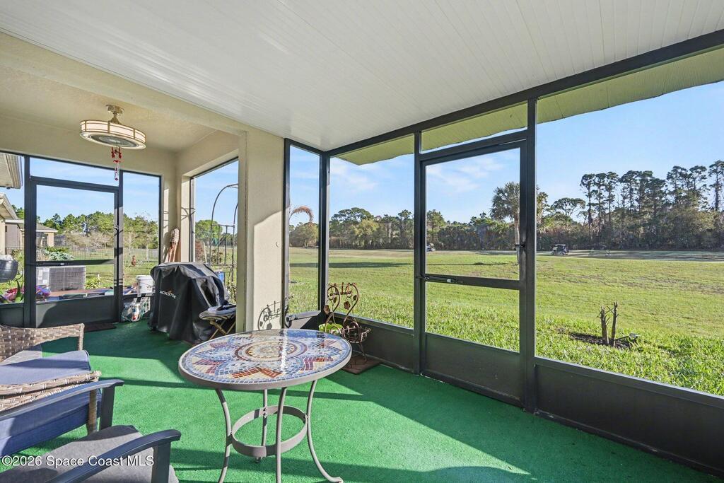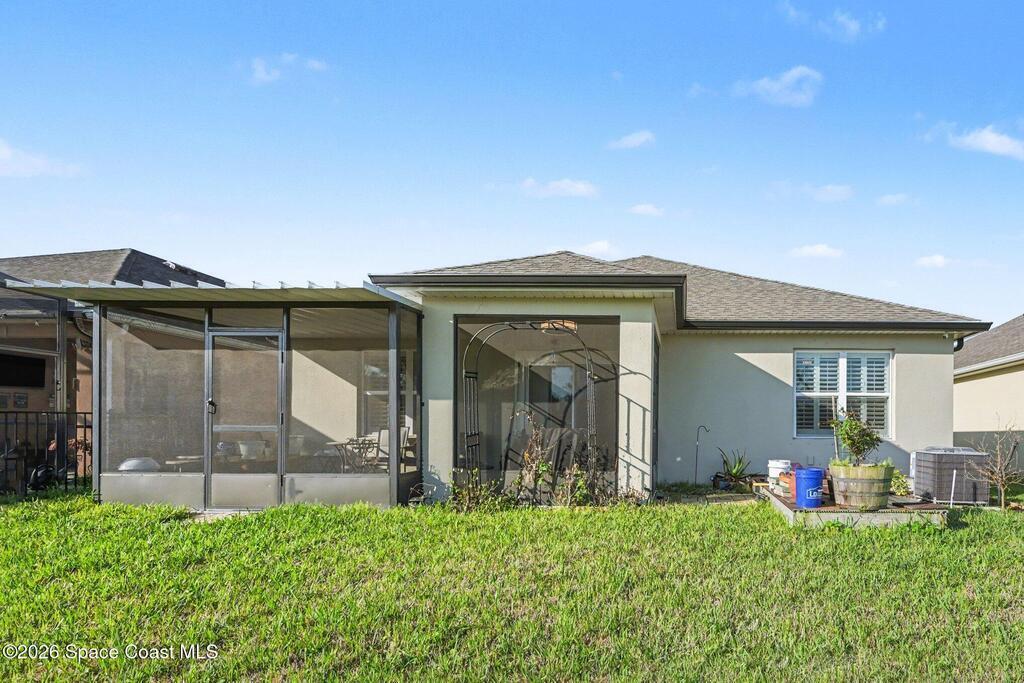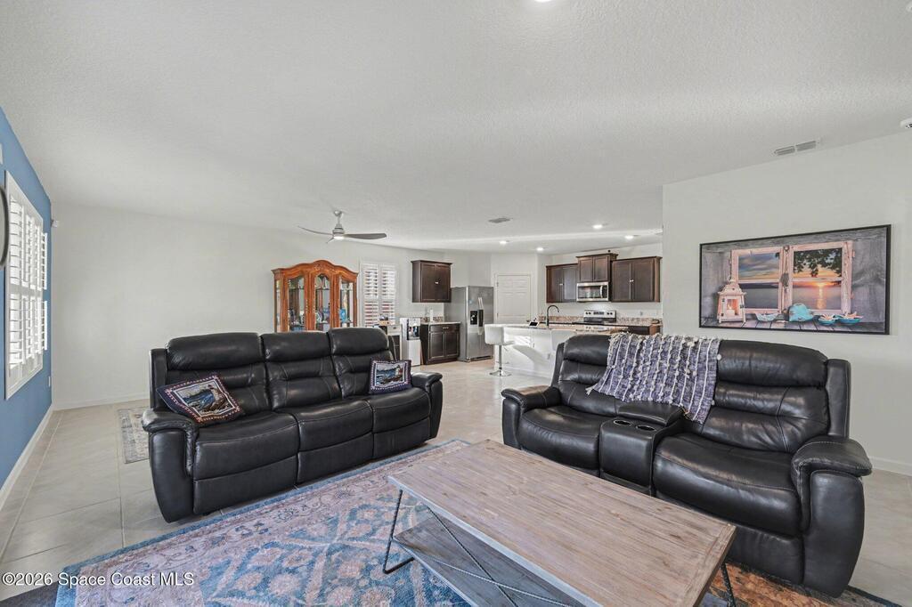 Welcome to this beautiful 2023 Cali Extended model in the sought-after Indian River Preserve community with peaceful golf course views! This 4 bedroom, 2 bathroom home offers an open layout with tiled living areas, abundant storage, and a large walk-in pantry. The kitchen and both bathrooms feature upgraded countertops for a clean, modern feel. The spacious primary suite includes double sinks, an upgraded walk-in shower, and dual walk-in closets. Key West style shutters add charm throughout. Enjoy Florida living with the extended covered lanai that has been fully screened, plus a screened front entry for added comfort and airflow. A perfect blend of style, space, and location in one of the area's most desirable communities.
