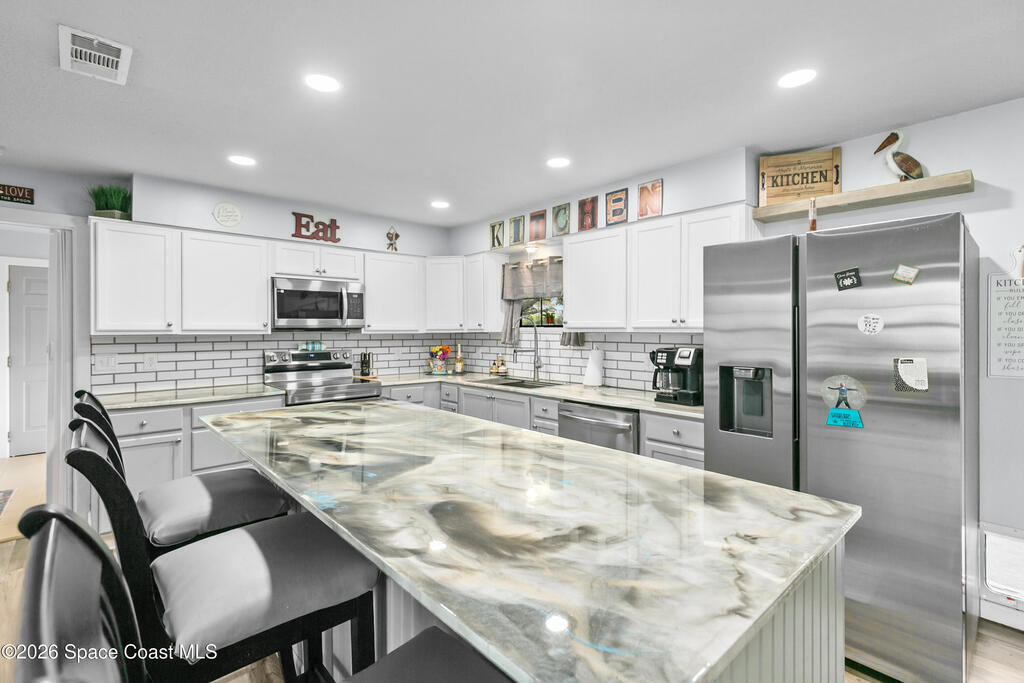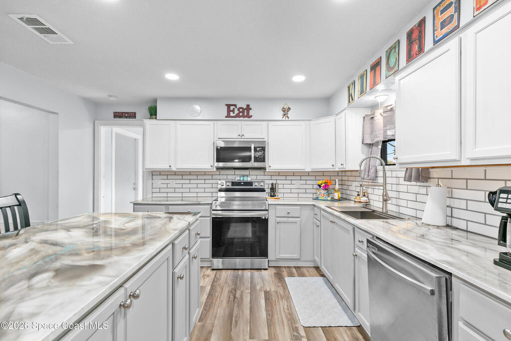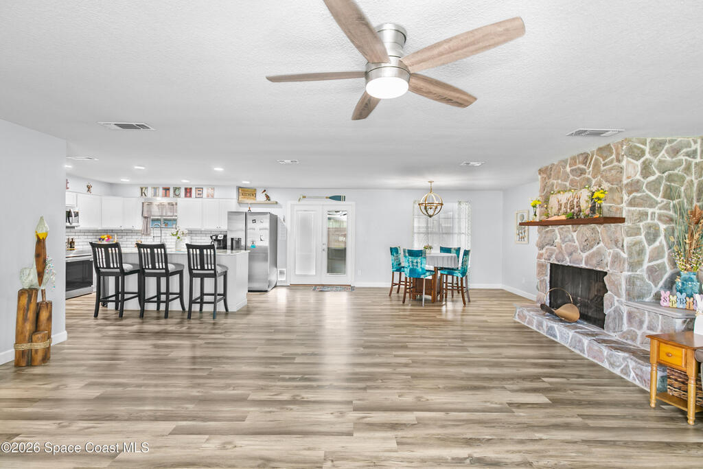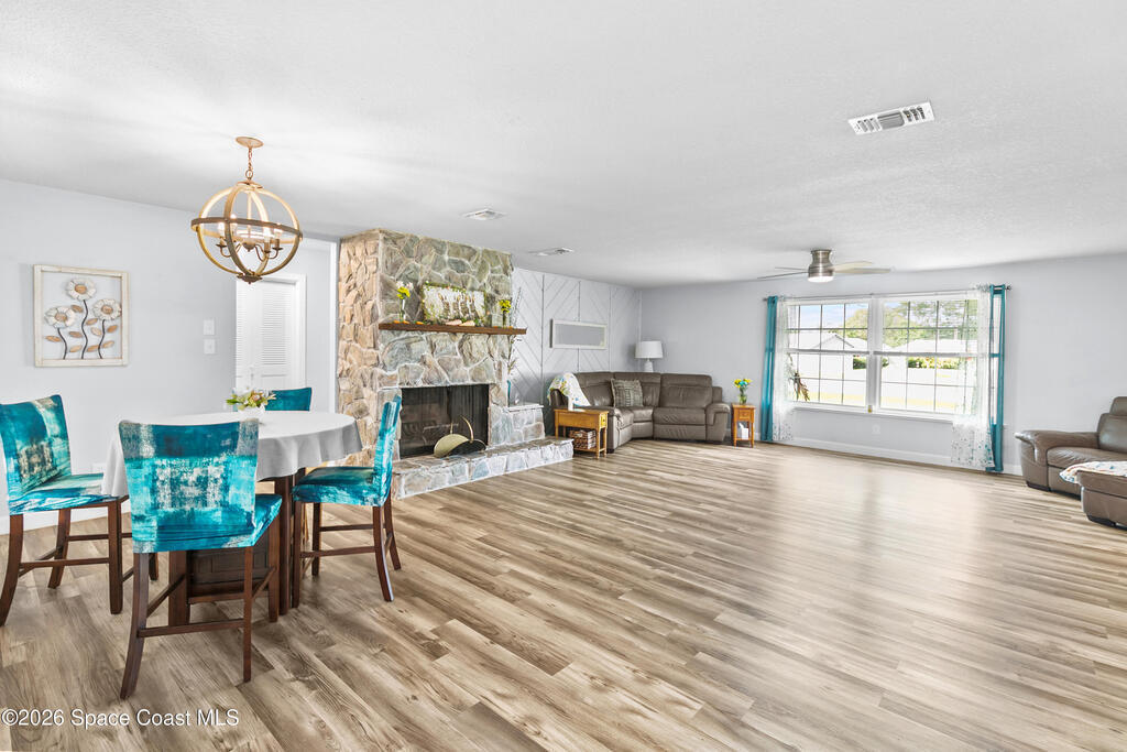 Take a look at this beautifully updated 3 bed, 2 bath home sitting on a spacious half-acre corner lot! Inside you will find a bright, open layout with tasteful updates throughout, including LVP flooring, fresh paint, brand new kitchen from top to bottom, and remodeled bathrooms. Step outside and enjoy all the extra space this property offers, complete with a workshop equipped with 220v electric. There is plenty of room for entertaining and storage! Another perk is that this home has TWO screened porches for your enjoyment.Major updates include a 2021 roof, new HVAC and hot water heater, and a 2018 septic and drainfield. Providing peace of mind for years to come!Conveniently located near shopping, dining, and the Indian River, with a boat ramp just minutes away! Enjoy rocket launch views right from your yard! Close driving proximity to KSC, SpaceX, Blue Origin, Orlando and the beaches.Schedule your showing today!