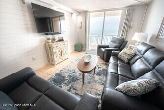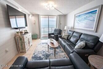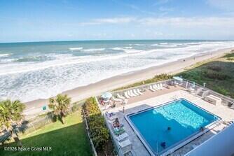 Turnkey 5th floor direct oceanfront investment opportunity in Indian Harbour Beach. This 2 bedroom, 2 bathroom condo offers approximately 1, 300 square feet with sweeping Atlantic views overlooking the beach and oceanfront pool. Fully furnished and rental ready, the unit features a spacious living area with balcony access, coastal finishes, a well equipped kitchen, and an in unit washer and dryer for guest convenience. The primary suite includes ocean views and private bath, while the guest bedroom comfortably accommodates visitors. Located in a well maintained oceanfront community with private beach access and strong short term rental demand, this property is ideal for investors seeking immediate income potential on the Space Coast.