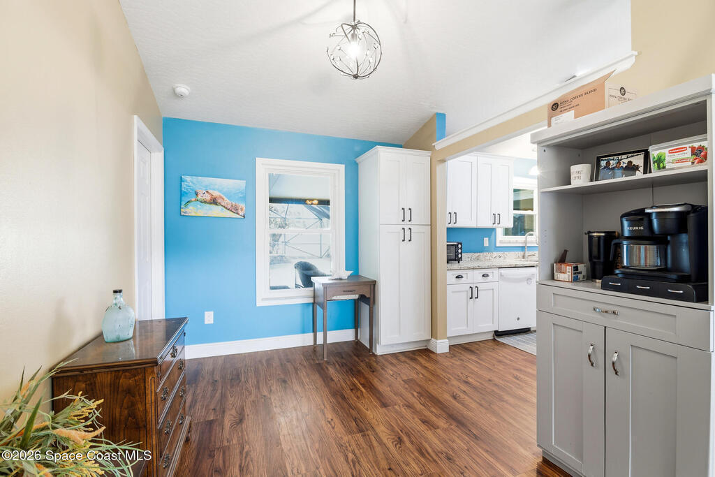 Tucked away on a private lot with a peaceful canal backdrop, this beautifully updated home offers the perfect blend of comfort, style, and space in desirable SE Palm Bay. Situated on nearly a quarter-acre, the property boasts a huge fully fenced backyard with plenty of room for your RV, boat, or future outdoor additions.Step inside and you'll immediately appreciate the exceptional open floor plan enhanced by vaulted ceilings, creating an airy and welcoming feel throughout the home. Elegant luxury vinyl plank flooring flows through the main living areas, complemented by coordinating laminate in the primary suite - no carpet anywhere, and finished with 6'' baseboards for a polished look.This thoughtfully designed home features 3 bedrooms and 2 beautifully updated bathrooms, along with a spacious flex room off the primary suite - ideal as a home office, nursery, fitness space, or private sitting room. The primary suite includes a walk-in closet and an updated ensuite bath with a newer