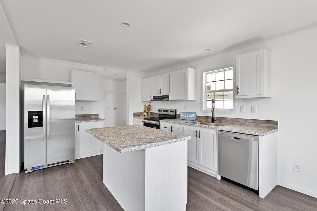 This HOUSE IS BRAND NEW in 2026! Wow! Beautiful brand new construction situated on a CORNER LOT in the wonderful 55+ community of BREEZY VILLAGE in SEBASTIAN, where you OWN THE LAND...which means NO LOT RENT to go up every year. Brand new means NEW ROOF, NEW AC, NEW WATER HEATER, NEW APPLIANCES, NEW EVERYTHING! The LARGE BRIGHT KITCHEN includes UPGRADED STAINLESS STEEL APPLIANCES, an ISLAND with an overhang for casual dining, lots of counter space with GRANITE-LOOK countertops, and features many SHAKER-STYLE CABINETS for storage. Tons of NATURAL LIGHT and WOOD-LOOK FLOORING throughout. Each bedroom has a large WALK-IN CLOSET. INDOOR LAUNDRY ROOM. The community of Breezy Village has a HEATED POOL, CLUBHOUSE, SHUFFLEBOARD, and RV/BOAT STORAGE is available. Just minutes to the INTRACOASTAL WATERWAY, BEACH, shopping, and restaurants. CITY WATER & SEWER.