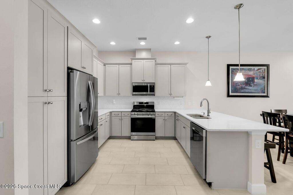 Wake up to serene water views and unwind each evening on your extended screened lanai in this beautifully upgraded townhome in Avalonia. Designed for effortless Florida living, this residence features elevated touches throughout, including 8-ft doors, upgraded baseboards, and a bright, stylish kitchen with 42'' crown-topped cabinetry. Tile flooring enhances the open living areas while plush carpet adds comfort to the bedrooms. Just steps away, the resort-style clubhouse invites you to enjoy sparkling pools, pickleball courts, and vibrant social spaces. With exterior maintenance and lawn care included through the HOA, this home offers the perfect blend of luxury, convenience, and low-maintenance living.