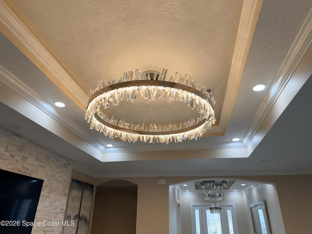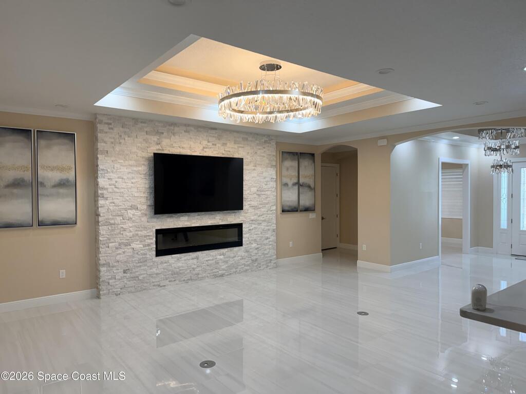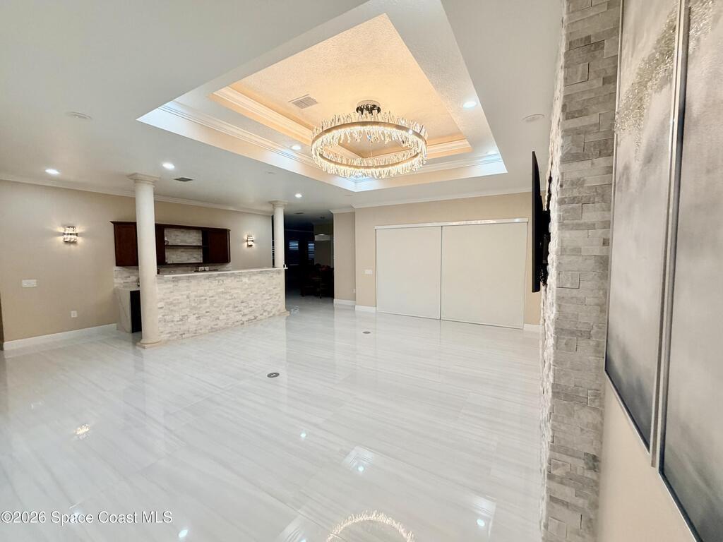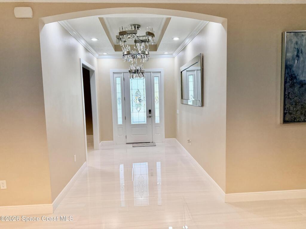 Contractor owner build in 2023 with warranties still in place, this custom home showcases top-tier materials and craftsmanship throughout, including spray foam insulation, fiberglass reinforced cement slab, solid poured concrete pillars, and humidity-reducing A/C system. High-end finishes abound, such as crown molding, epoxy garage floor, impact-resistant windows and exterior doors, and custom chandeliers. Enjoy ample space for outdoor entertaining with an extended lanai and a fully fenced backyard. With No HOA and abundant paved parking, this energy-efficient home offers nearly 4, 000 square feet of climate-controlled living space with noticeably low electric bills. Additional highlights include a dedicated office and a separate exercise room. Ideally located just 45 minutes from Orlando International Airport, 8 minutes to the beach, and 20 minutes to Cape Canaveral.