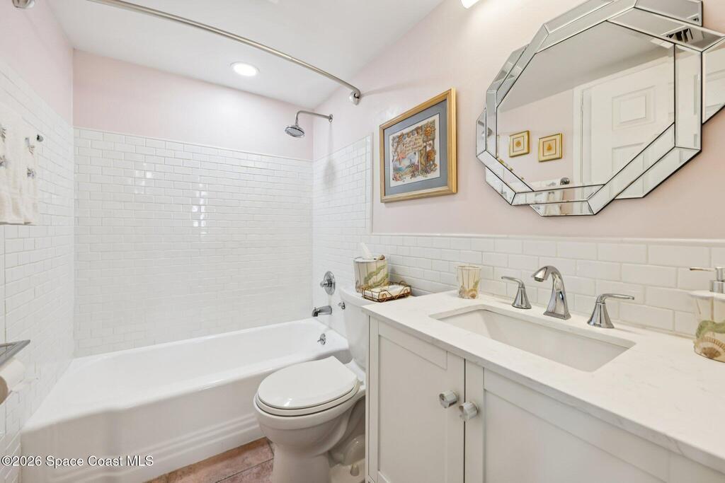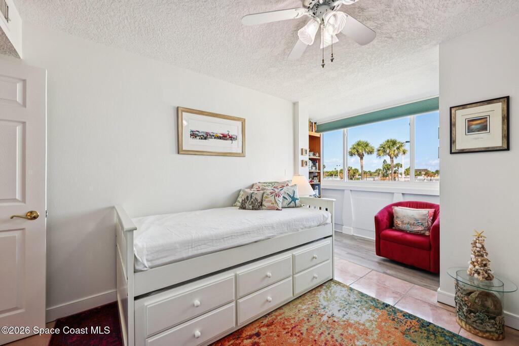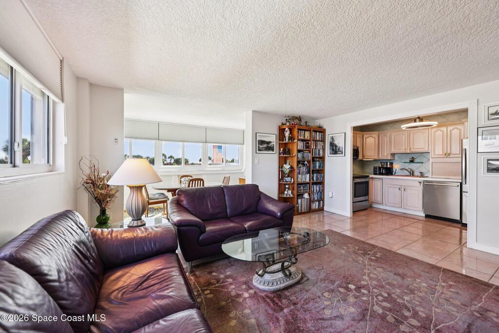 Coastal living awaits in this oceanfront 2-bedroom, 2-bath condo in the desirable Twin Towers Condo. This 912 sq ft residence features a bright open floor plan where the living and dining areas flow together, filled with natural light. The kitchen offers stainless steel appliances along with ample cabinet and counter space. The primary bedroom provides a spacious retreat with an additional nook ideal for a reading space or home office. The primary bathroom features a glass-tiled walk-in shower, while the second bathroom includes a recently refinished bathtub. Both bathrooms were fully remodeled in 2022. Each floor of the building has a convenient laundry room for residents. Major updates include impact windows and electric shutters (2022), a new electrical panel with upgraded GFI outlets (2022), tankless water heater (2022), and upgraded lighting and ceiling fans. This unit also comes with a private deeded carport parking space, providing added convenience.