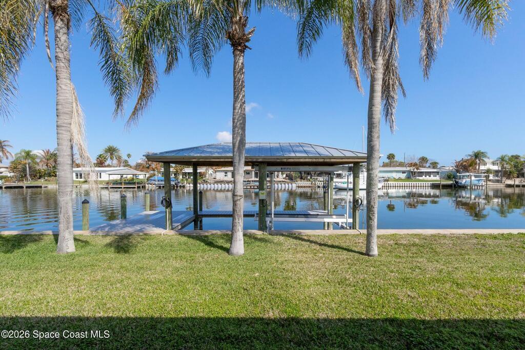 Waterway Estates - Impeccably Maintained Canal-Front Home Offers Big Ticket Updates! 8, 000 lbs Lift with 24' Covered Slip, Newer Seawall & Concrete Cap. Plus, a Newer Metal Roof (Saves on Energy Costs and 100% Wind Mit Rating), Gutters. and Exeterior Paint in 2022. Newer Irrigation Pump, Hot Water & AC Condenser, Updated Electrical Panel. Quintessential Beachside Floor plan with Classic Wood & Terrazzo Floors. Updated Kitchen & Baths Offers Solid Wood Cabinets & Stainless Appliances. Standout- 200 Sq.Ft. Private Office or Guest Suite. Looking to Entertain? Choose Either Your Huge Back Porch with Vinyl Plank Flooring, Newer Fans and Gorgeous, Kevlar, Retractable Hurricane Blinds or the 10X16 Composite Deck at Water's Edge! ~Make This Your Last Move~