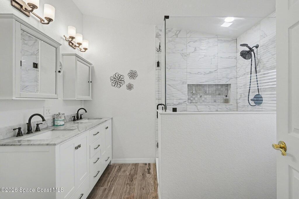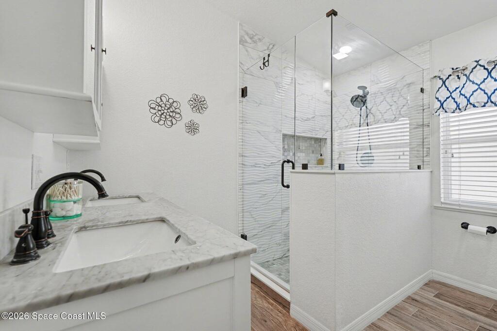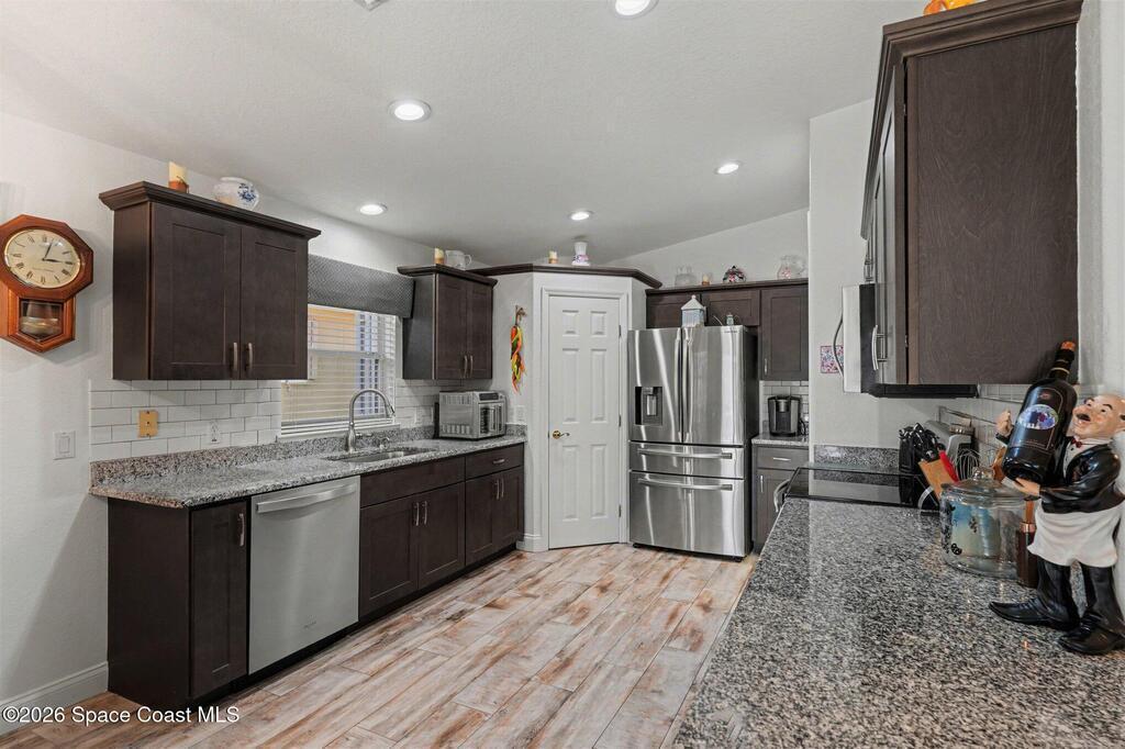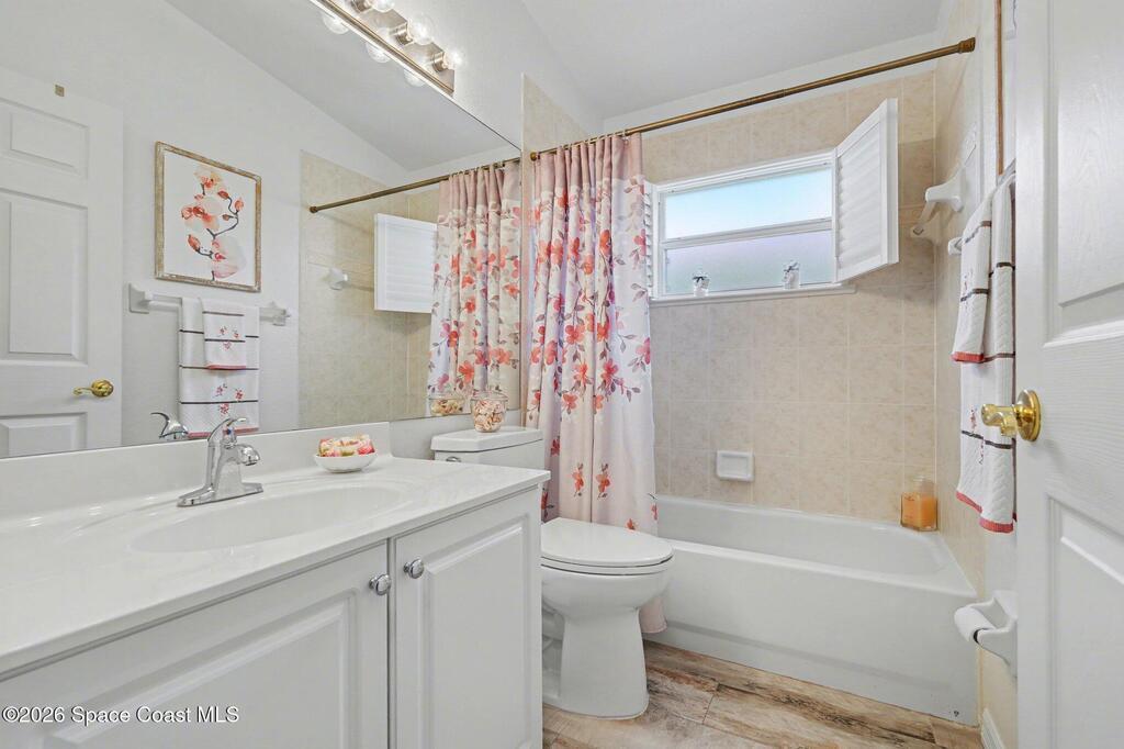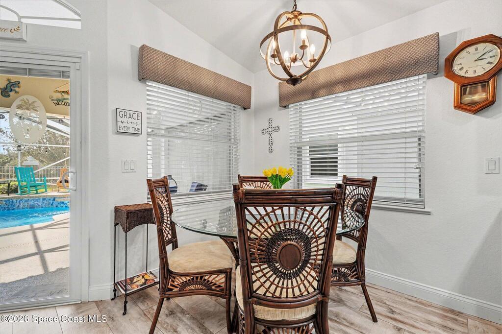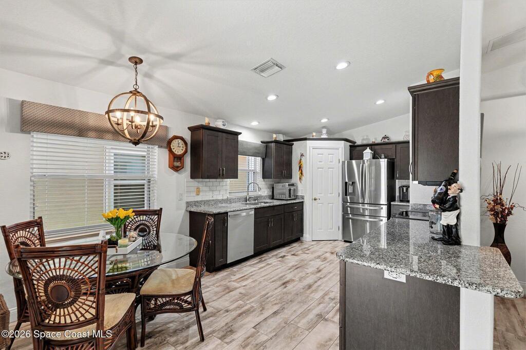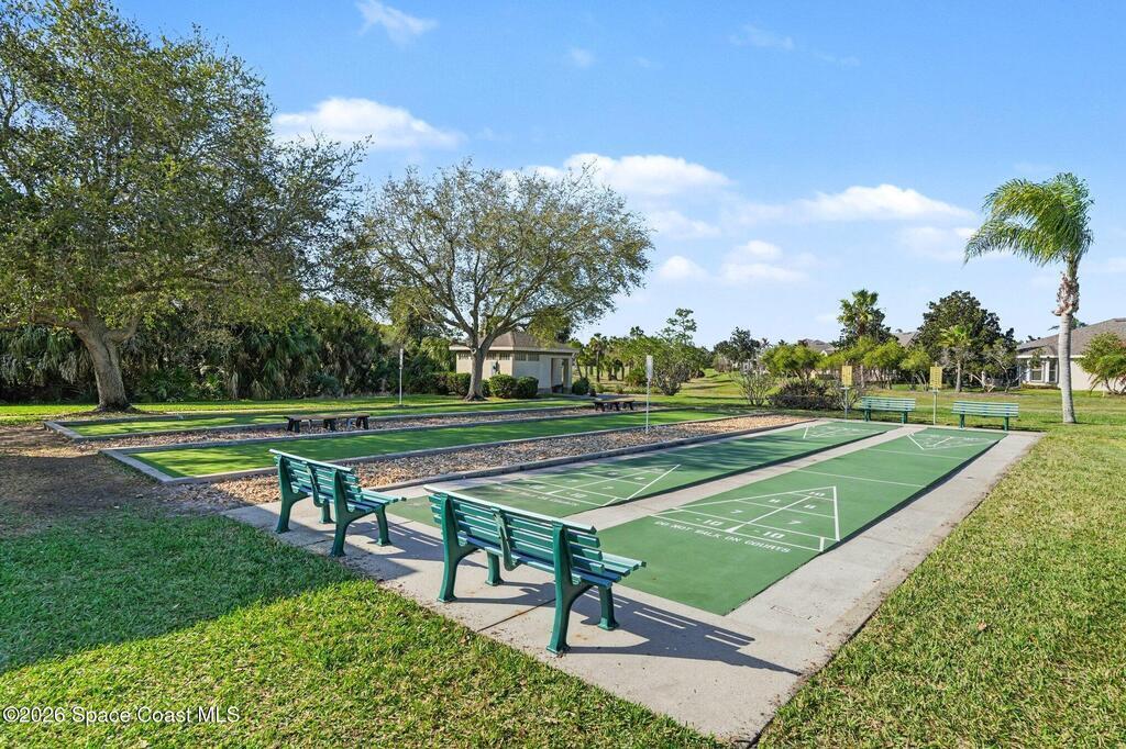 Located in the desirable Ashton neighborhood of Viera East Golf Club, this beautifully updated 3-bedroom, 2-bath POOL home sits on a quiet CUL-DE-SAC with paver driveway and offers true move-in-ready living. The open, light-filled floor plan features a spacious kitchen with granite countertops, stainless steel appliances, and a breakfast nook overlooking the main living area. The great room offers vaulted ceilings, large windows, and French doors opening to a screened lanai with a saltwater pool-perfect for indoor-outdoor Florida living. Additional features include accordion hurricane shutters and gutters. Recent updates include: PRIMARY BATH REMODEL 2023, barrel tile roof (2016), HVAC (2019), water heater (2019), pool resurfacing with new tile (2025), patio deck coating (2023), Eufy lighting (2025), and updated landscaping with curbing, river rock, and drainage (2021). Community amenities include golf, tennis, pool, clubhouse, and HOA lawn maintenance.