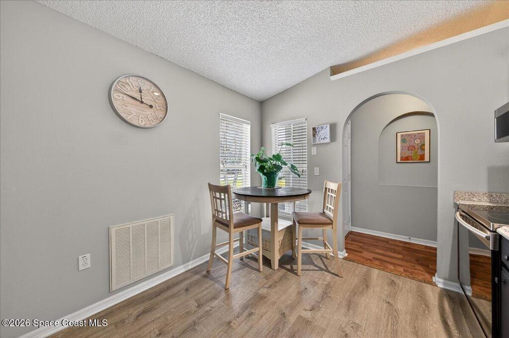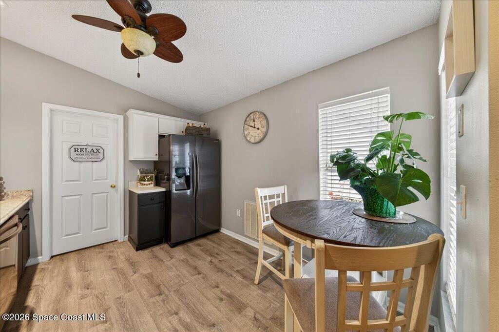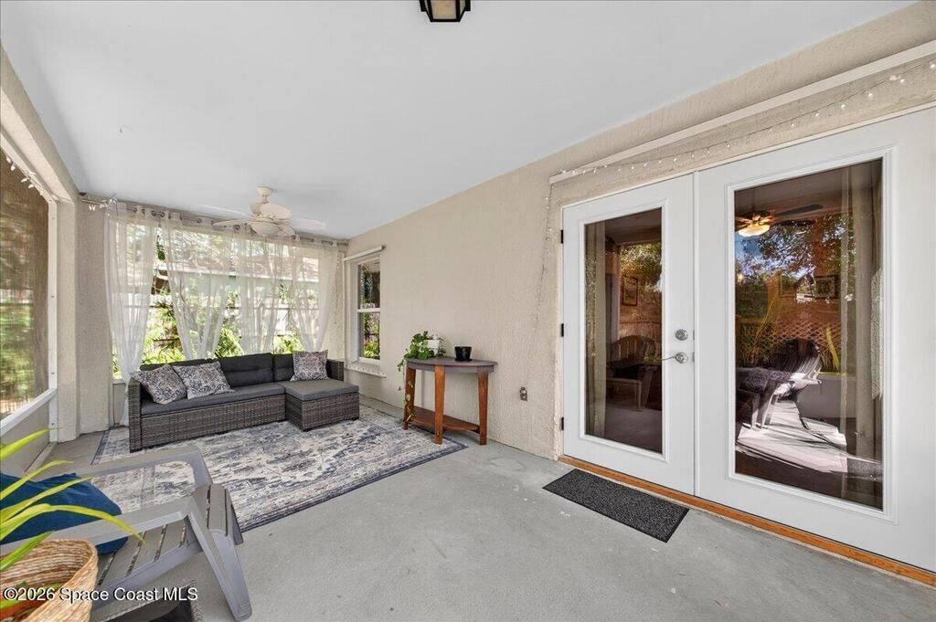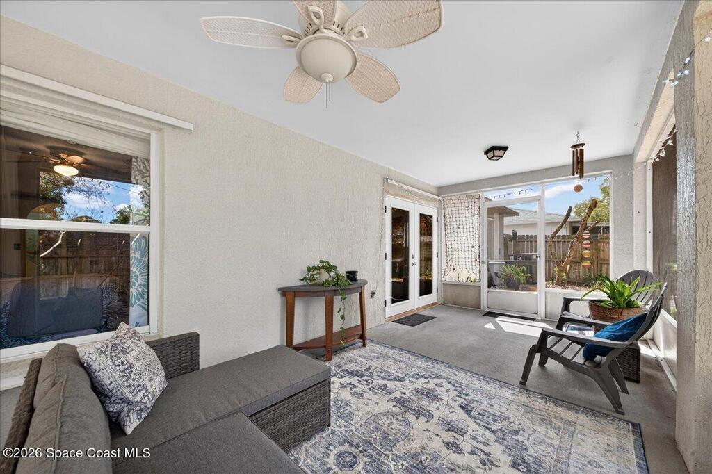 This West Melbourne charming 3 bedroom, 2 bathroom home is tucked away in this quiet family friendly gated community with community pool and playground (coming soon) This home is the perfect starter home, retirement home or even great investment home. Beautiful kitchen, open floor plan, spacious bedrooms & no carpet all LVP flooring throughout, New French doors in living room exiting to screened in porch overlooking private backyard to enjoy entertaining or relaxing with a book. New roof 2023, gas water heater, HVAC 2019, low HOA under $40.00 a month! Easy commute to I-95, many restaurant & shopping choices with short drive to our beautiful river & beaches. Make your appointment soon for your private showing.