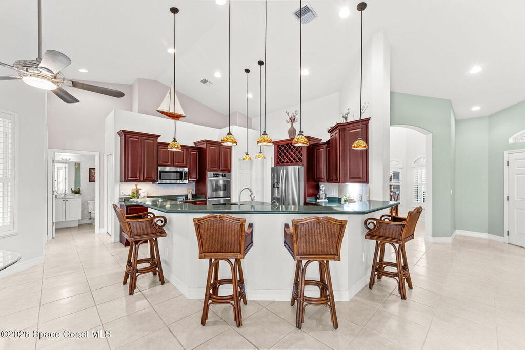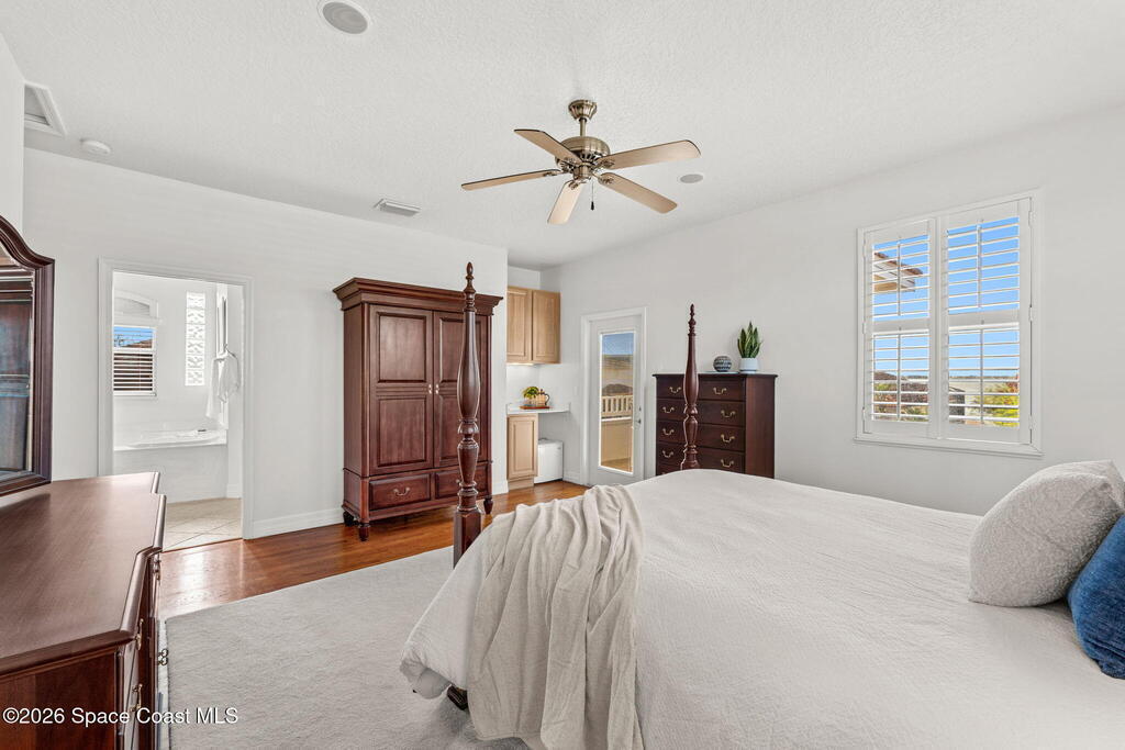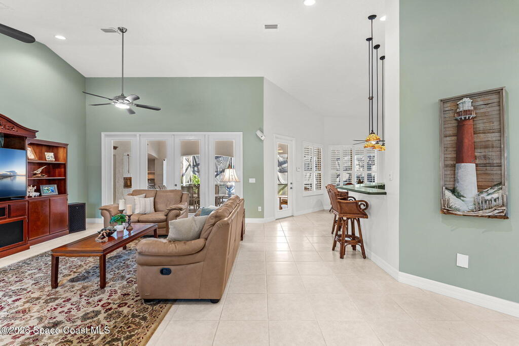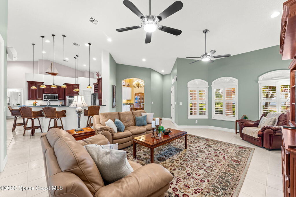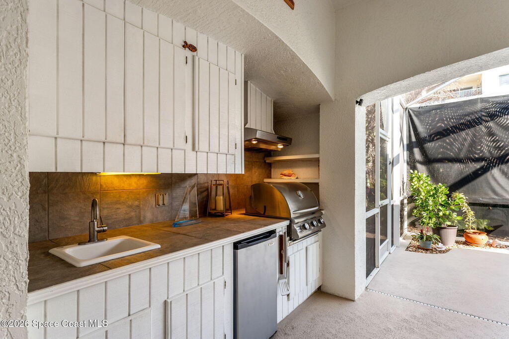 Discovery Bay never disappoints! This home has it All-pool, outdoor kitchen, and open-air balcony overlooking the Banana River! Minutes from the beaches, Port Canaveral, and an array of local dining and entertainment, this exceptional residence offers both privacy and convenience. Designed with elegance, this home features expansive living spaces, soaring ceilings, lots of natural light, and is equipped with finishings that showcase the masterpiece-even a laundry chute! The Chef's kitchen is the centerpiece, appointed with double ovens, solid wood cabinetry, large pantry, and Silestone quartz countertops. Step outside into the outdoor oasis that features a sparkling pool, outdoor kitchen, and space designed for Florida's year-round sunshine. The luxurious master suite opens directly onto the balcony and includes a private wet bar, spa-inspired bath with jetted tub, double vanities, and shower. Car enthusiasts enjoy the 3 -car garage with attached workshop! River access too!