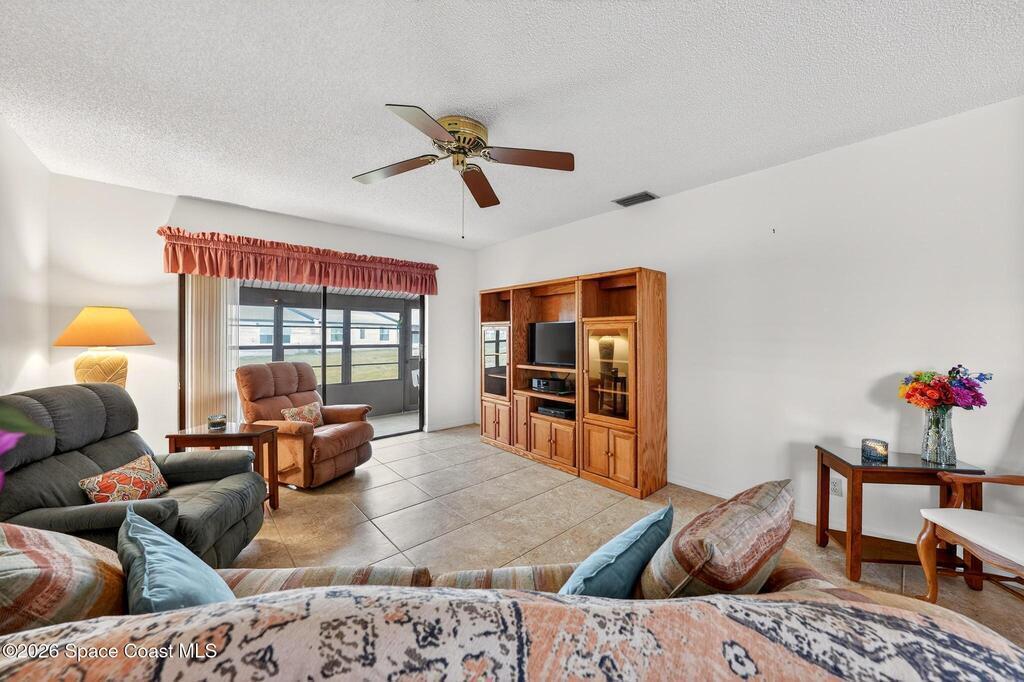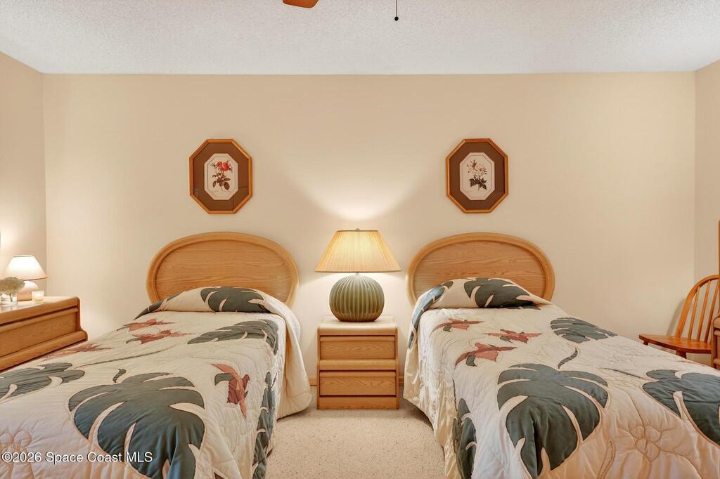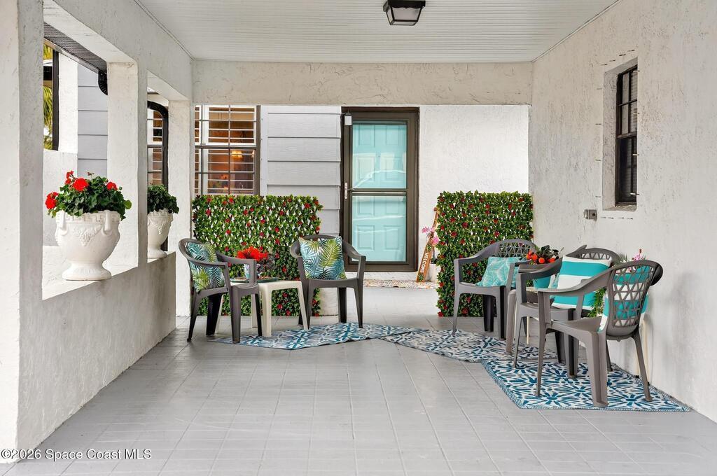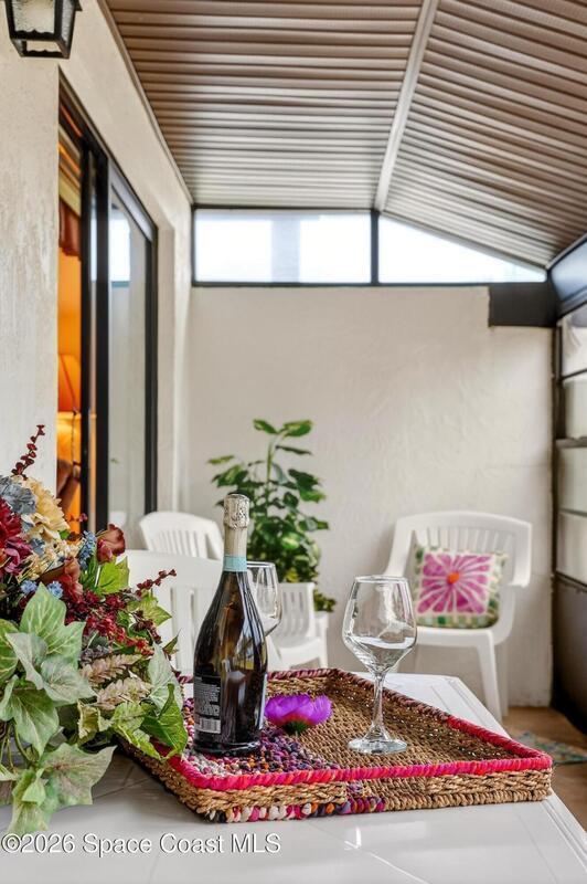 Pool to the left, beach to the right--this rare corner-lot villa puts the best of coastal living just steps from your front door. Step outside and choose between a refreshing dip in the pool or a short stroll to the beach only moments away. Ideally positioned at the entrance to the community, this single-story villa offers the ease of stair-free living and a layout designed for comfort and simplicity. Inside, high-end porcelain tile flows throughout the entire home and extends onto the back patio, creating a seamless indoor-outdoor feel perfect for relaxed coastal living. The primary bathroom features an updated walk-in shower with safety grab bars, while plantation shutters throughout add timeless style and privacy. The rear patio has been upgraded with new rust-resistant fascia and soffits designed for durability in the ocean air. Parking is a rare bonus with three dedicated spaces including a private garage, and covered carport. The perfect beach getaway or a place to downsize into!