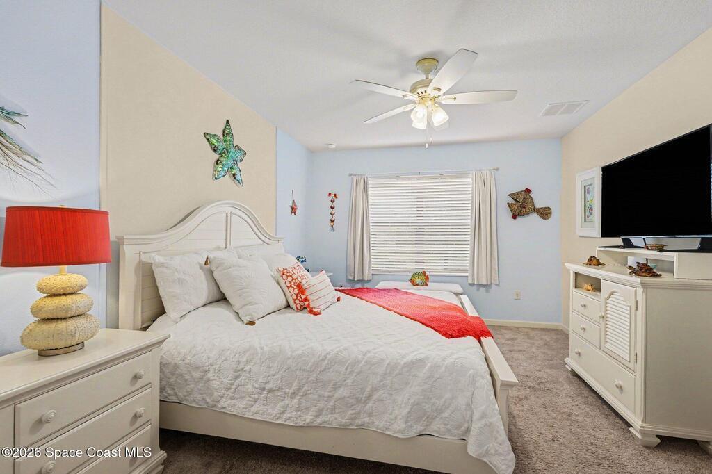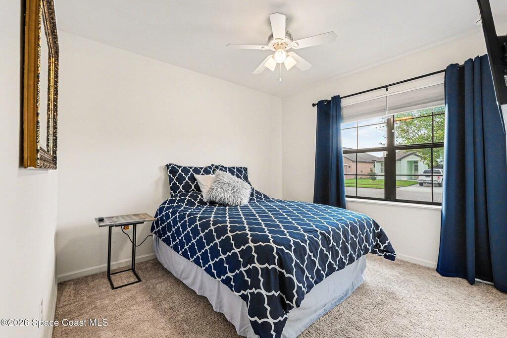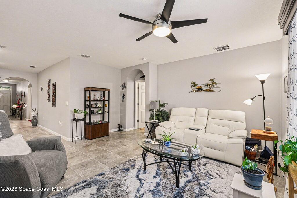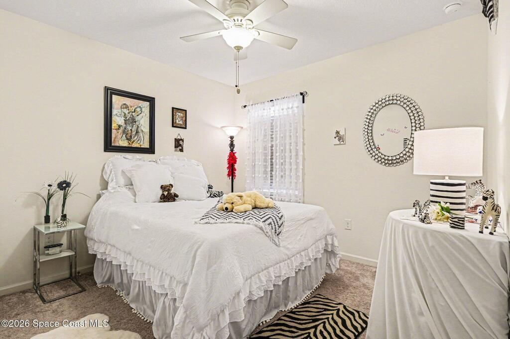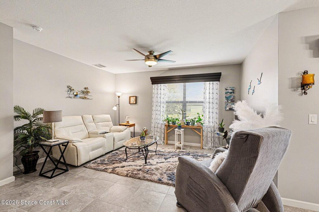 Located in the sought-after Panther Ridge community, this well-maintained 4-bedroom, 2-bath split-plan home offers comfort, upgrades, and a prime location with low HOA fees. Exterior improvements include Rhino Shield ceramic-based exterior paint with a 25-year transferable warranty, full-house gutters, an extended paver lined driveway, and a screened back porch perfect for relaxing. The yard features CitraBlue grass, a deep well irrigation system, and B-Hyve smart sprinkler control from your phone. Interior upgrades include a RainSoft whole-house water softener, UV HVAC air purification, and double-pane windows and doors for energy efficiency and noise reduction. The home also features storm shutters, an insulated garage door with hurricane brace, and is located in Flood Zone X. Community amenities include a pool, pool house, and playground. Convenient to Kennedy Space Center, Port Canaveral, beaches, Orlando, and the airport.