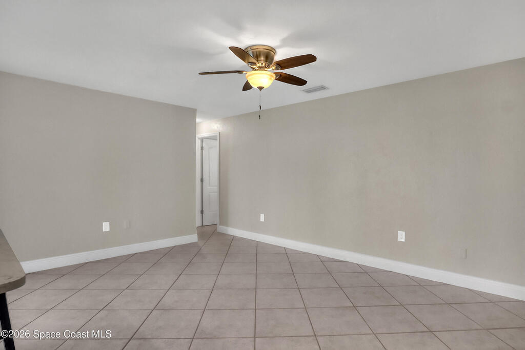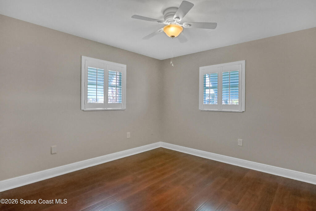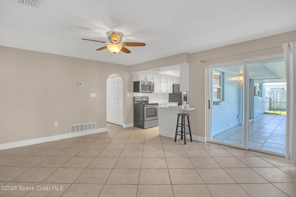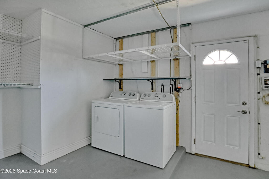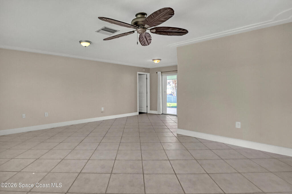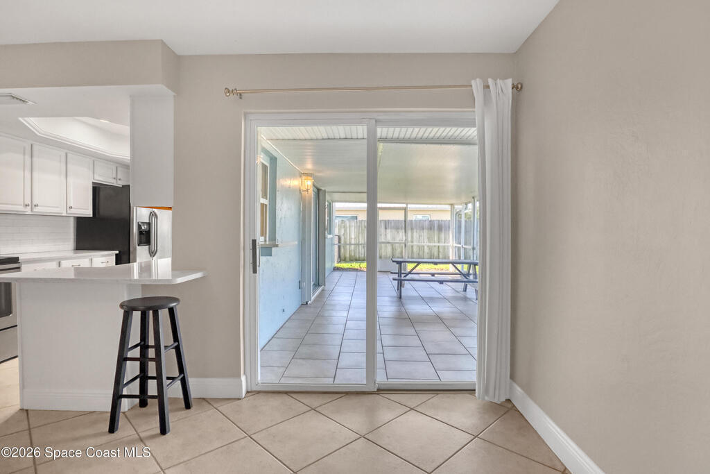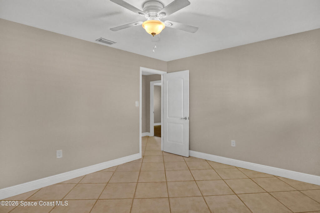 Boater's paradise on a deepwater canal with 85 ft of waterfront, covered dock, expansive sun pad, 80' boat lift, and two powered jet ski lifts. This 4-bed, 2-bath home offers a galley kitchen with stainless appliances, quartz counters, white cabinetry, and subway tile backsplash. Enjoy multiple living areas including formal living/dining, family room/flex space, and a huge, screened porch. Split floor plan with large en-suite primary and three additional bedrooms plus cabana bath with backyard access. Impeccably maintained: plantation shutters, metal roof, hurricane window & door protection, Tesla charger, no carpet, washer/dryer, storage shed, and side-entry garage access door. Canal dredged in 2025. Underground utilities. Minutes to Space Force Base and quick boat access to the Banana River. Outstanding location near the beach and top-rated schools.