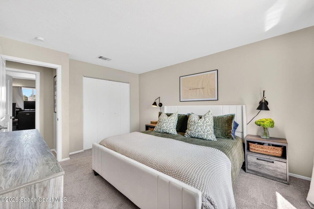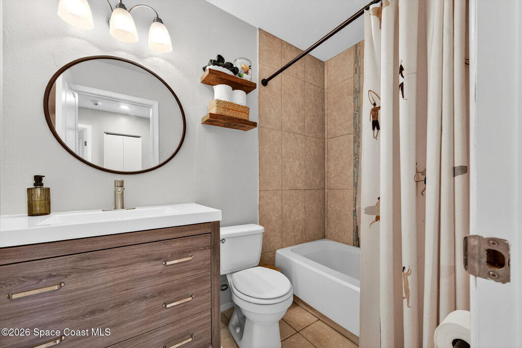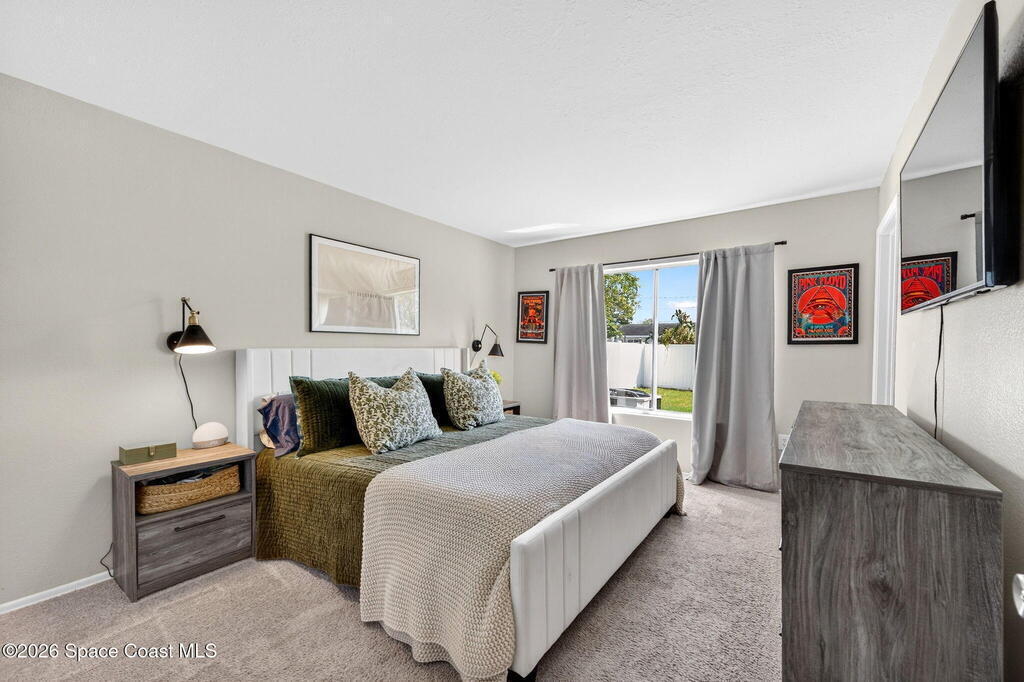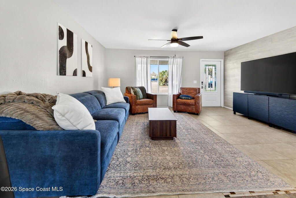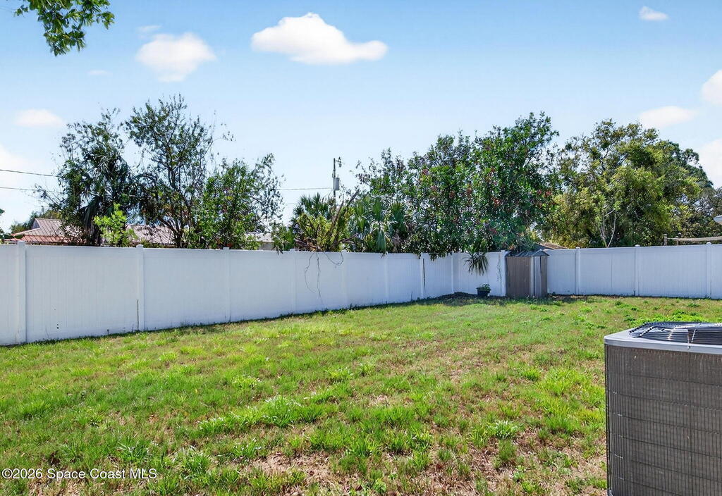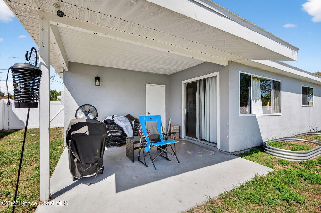 Welcome home to this charming 3 bedroom 2 bath residence located in the heart of the Space Coast! This inviting home offers a NEWER roof (2019), along with a bright and open floor plan designed for comfortable living and easy entertaining! Step inside to find tile flooring throughout the main living areas and durable LVP in the bedrooms, both beautiful and practical. The kitchen features elegant granite countertops, a large center island perfect for gathering, classic white shaker style cabinetry, and sleek stainless steel appliances. Both bathrooms have been updated, adding a modern touch to the home. The open layout allows natural light to flow throughout the living spaces, making it easy to relax. Outside, the fully fenced backyard has clean white vinyl fencing- perfect for pets or weekend BBQ's. The covered back porch is a cozy spot for coffee or to unwind in the evenings. Complete with a 1 car garage and located near everything that makes this home desirable with comfort and style