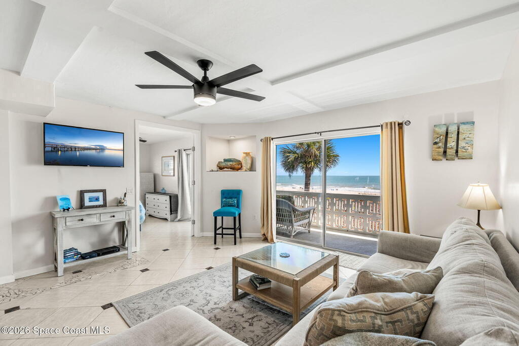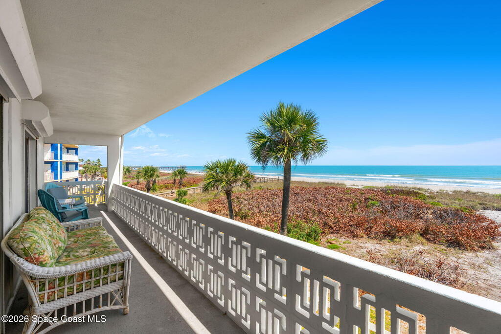 Experience beachfront living at its finest in this stunning PENTHOUSE CORNER condo with direct OCEAN views from every room. Perched above the shoreline, the fully Furnished home features 2 bedrooms and 2 baths and a sweeping WRAP-AROUND balcony that invites sunrise coffee, sunset cocktails and incredible ROCKET LAUNCHES while you listen to the surf.Inside, bright, open living spaces flow toward expansive glass and coastal breezes--each room framed by panoramic Atlantic vistas. The primary suite enjoys private views and easy access to the balcony; the second bedroom is equally airy and light-filled, perfect for guests or a home office.Step outside to resort-style community amenities: a sparkling pool and direct beach access that puts sand and surf just moments away. Located just one block from the world-famous Cocoa Beach Pier, you're minutes from dining, shopping, and seaside entertainment.This penthouse is an ideal primary residence, vacation retreat, or investment opportunity.