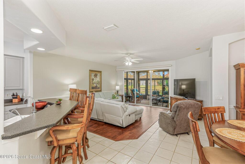 Welcome to easy living in the gated community of Summit at Sawgrass in Suntree, where the HOA handles lawn care so you can spend more time enjoying life on Florida's Space Coast. Situated on a waterfront lot, this home offers peaceful water views from the primary bedroom and screened lanai/Florida room--ideal for morning coffee, quiet afternoons, or visiting with friends. Inside, the open-concept layout provides a neutral palette and tile and laminate flooring throughout--no carpet for easy maintenance. The spacious kitchen features stainless appliances, a gas stove, and a sunny breakfast nook. A reverse osmosis system provides purified water to both the kitchen sink and refrigerator dispenser. Additional highlights include storm shutters, an interior laundry room with utility sink, plus the washer and dryer are included. Residents enjoy a beautifully maintained neighborhood with a clubhouse, heated pool, and covered patio. Come see why life is better in the Summit at Sawgrass!
