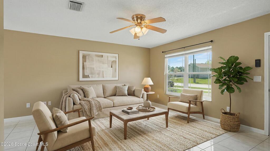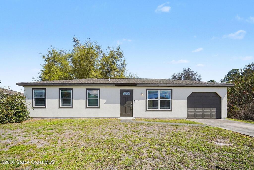 Beautifully maintained and freshly painted home offering comfort, space, and modern updates. This property features impact windows and city water for added convenience and efficiency. Inside, you'll find a spacious open living and dining area with tile flooring throughout the main living spaces and brand-new carpet in the bedrooms. The kitchen offers granite countertops, ample cabinet space, and a functional layout for everyday living. The primary bedroom includes a bathroom with a walk-in shower. Additional bedroom provide flexibility for family or a home office. Laundry is conveniently located in the garage. Sliding glass doors lead to a large backyard with plenty of room to relax, entertain, or create your ideal outdoor space. Conveniently located near shopping, schools, parks, and major roadways.