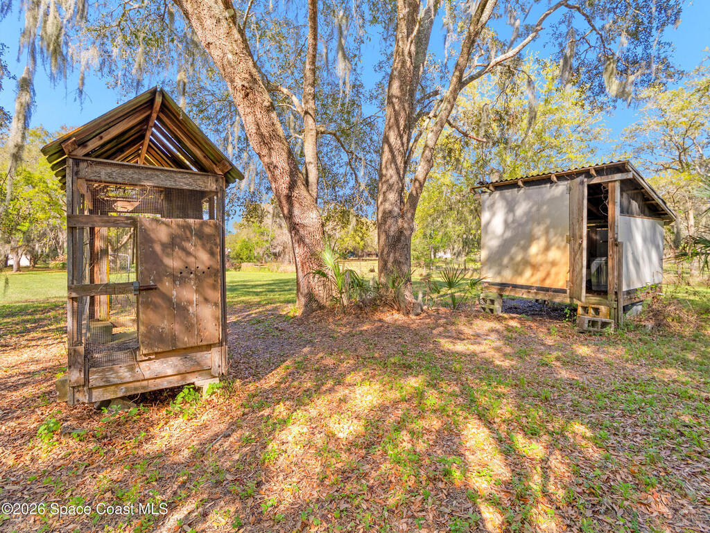 Set on 5.15 acres in Mims, this spacious country property offers room to spread out with 2, 345 sq ft of living space, 4 bedrooms and 2.5 bathrooms, and plenty of outdoor amenities. Built in 1968 with an effective year of 1995, the home features block construction (BCPAO notes frame/block) with updates including a roof replaced in 2020 and permitted electrical work completed in 2024. The property is well-suited for animals with horse stables, chicken coops, and two fenced pasture fields designed to rotate grazing, complete with electric fencing. A large metal outbuilding and 795 sq ft detached garage/workshop provide excellent space for equipment, storage, or hobbies. Enjoy the charm of mature fruit trees, including pear and tangerine, and plenty of space for outdoor fun--including a zip line across the property. A rare opportunity to enjoy privacy, acreage, and country living with room for horses.