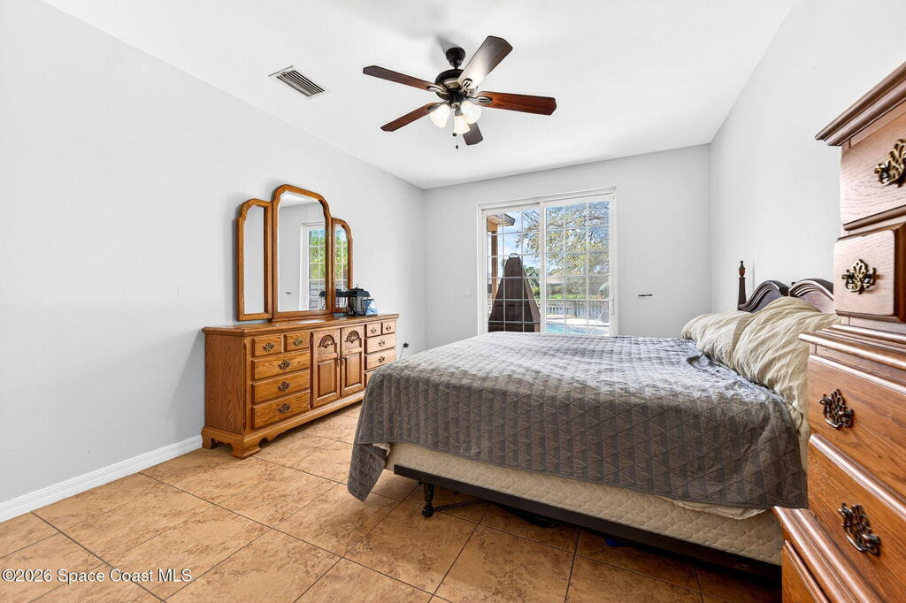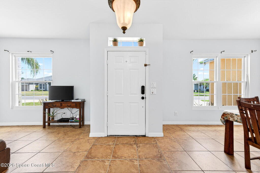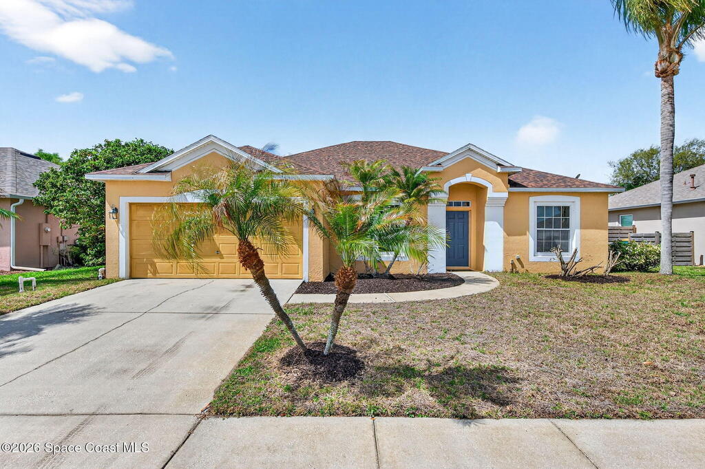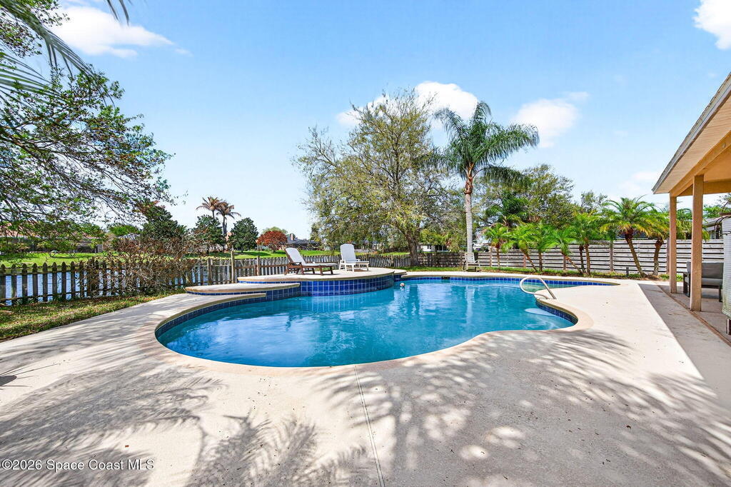 Welcome to this spacious 4-bedroom, 2-bathroom pool home located just minutes from the desirable Viera area. Enjoy peaceful lake views and a layout designed for both everyday living and entertaining. The large kitchen features an expansive counter that flows seamlessly into the family room, creating the perfect gathering space. The owner's suite offers a relaxing retreat with a soaking tub, separate shower, and sliders leading directly to the pool area. Step outside to your private pool and enjoy tranquil water views. Major updates include a 2020 roof and 2024 hot water heater, providing peace of mind for years to come. Located in the beautiful community of Grand Haven, residents enjoy amenities including a park, tennis courts, basketball courts, and more. Conveniently close to shopping, restaurants, Costco, and just a straight drive to the beach, this home is ready for the next family to make it their own and enjoy the Florida lifestyle.