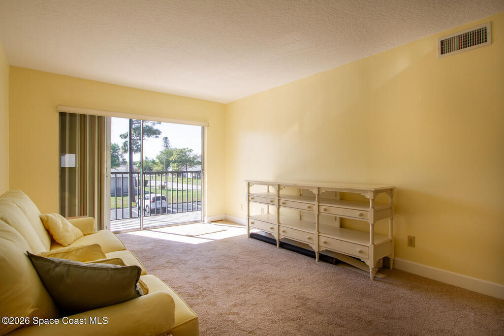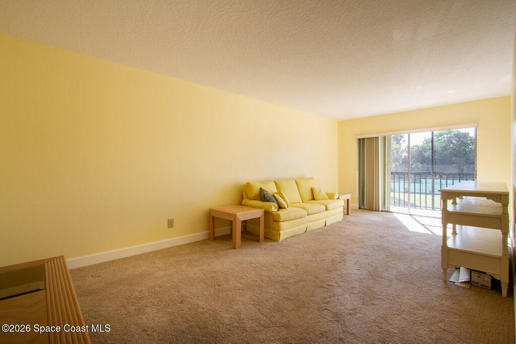Charming 2-bedroom, 2-bath second-floor condo located in the heart of Melbourne. The kitchen features a convenient pass-through to the dining area, and the unit includes in-home laundry hookups. The living room opens through sliding glass doors to a tiled balcony--perfect for relaxing and enjoying beautiful afternoon sunsets. Community amenities include a clubhouse, pool, tennis courts, laundry facility, plus water, sewer, cable, and trash included in the association. Conveniently located near shopping, restaurants, golf, and with easy access to Patrick Space Force Base.