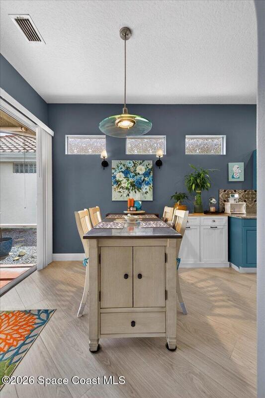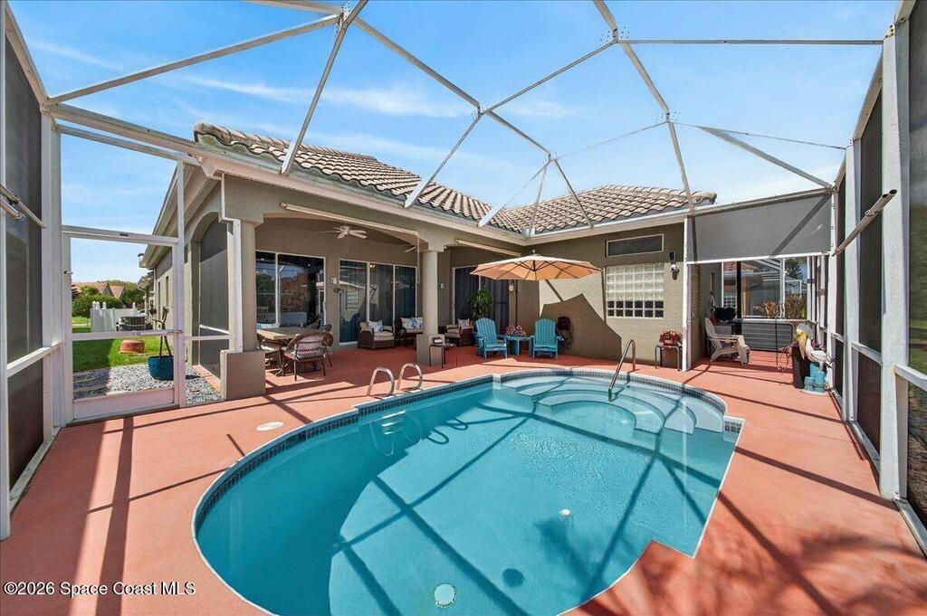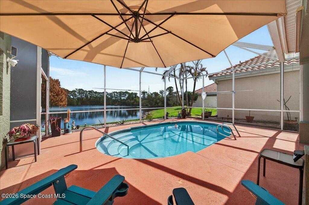 Elegantly updated lakefront pool home in desirable Sun Tree offering privacy, style, and effortless Florida living. Unwind in your private screened solar-heated saltwater pool while enjoying tranquil lake and preserve views--perfect for breathtaking sunsets and peaceful outdoor relaxation. Inside, soaring ceilings, abundant natural light, fresh neutral paint, and beautiful wood-plank tile flooring create a warm, inviting atmosphere. The upgraded kitchen features custom cabinetry with pull-out shelving, elegant countertops, brand-new appliances, and a gas range ideal for home chefs. The spacious primary suite offers direct pool access and a beautifully updated bath with dual vanities, soaking tub, and large walk-in closet. Additional highlights include a 2-car garage, newer A/C, new water heater, a 3-camera exterior security system, and HOA maintenance covering lawn care, pest, exterior painting, and tile roof cleaning-making this move-in ready lakefront retreat truly exceptional. 🌅🏡