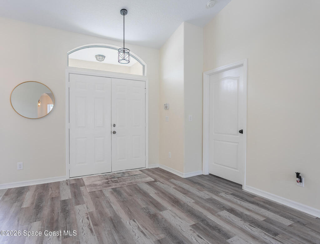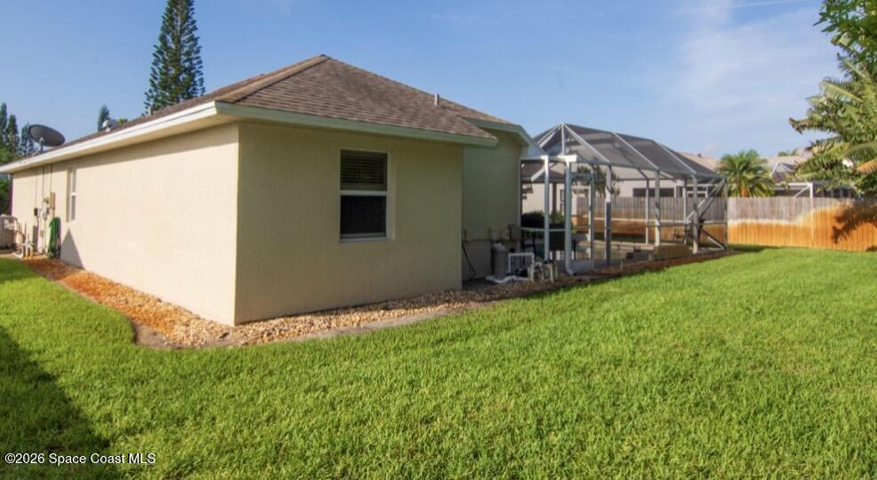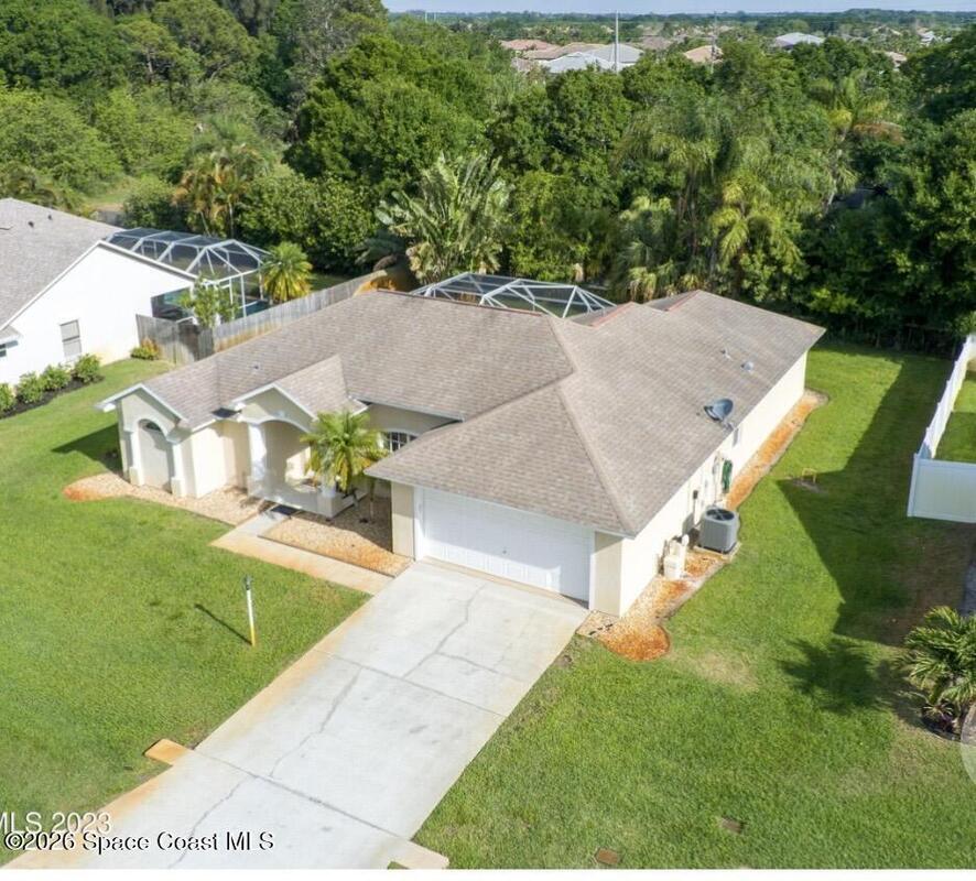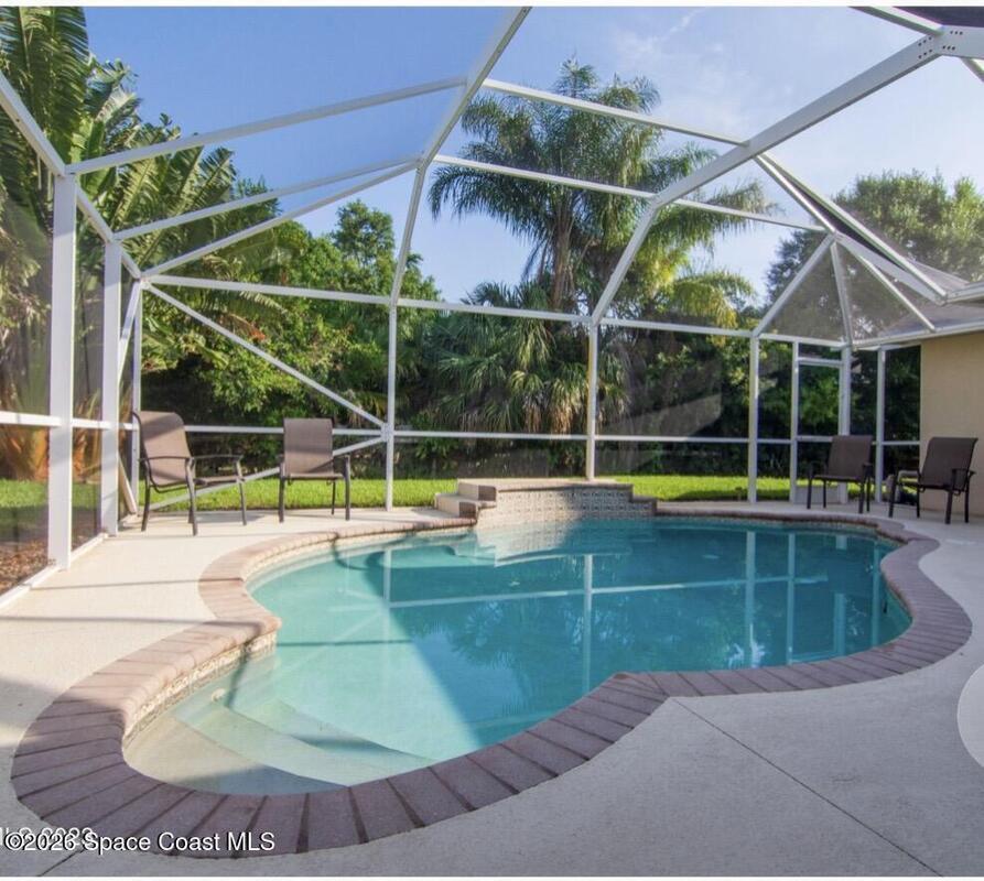 Modern 3/2 contemporary home in desirable Lindsay Lane neighborhood, Enclosed screened Saltwater pool, center of the home. Cabana style pool bath.Master bedroom features entry to pool, dual closets, Garden tub, Separate shower, double sinks. Easy carefree home features completely updated! of stylish functional living space. chef's kitchen with Recent appliances, Kitchen pantry. Recent washer and dryer in the laundry room, water heater, flooring, lighting, fencing, shed, all in the last two years. 2023 A/C. Oversize two car garage. Irrigation Well, and sprinkler system.Low HOA only 75 p/ quarter. Top rated schools great beaches and great fishing, shopping, Fine restaurants. Less then two hours to universal Studios, Disney World, and Orlando attractions. Little over hour to Kennedy Space Center, Space X. Cape Canaveral.Truly, a piece of paradise to call your own.