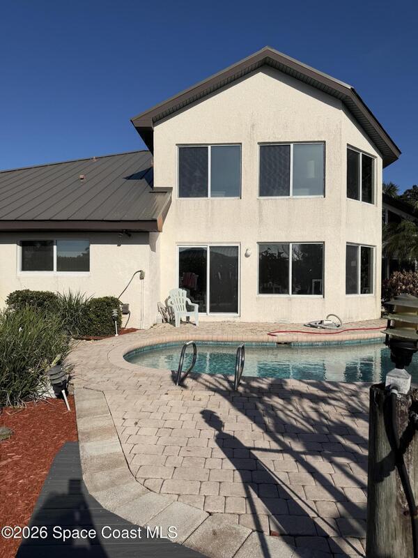 Welcome to Paradise! This 3bedroom, 4 bath spacious home in the exclusive gated community of Tortoise Island. It fronts the grand canal leading to the Indian River. This is living at its best. Swim in the sparkling pool or take your boat out for a day on the water. In colder weather snuggle up in the living room by the beautiful stone fireplace.The house has a new metal roof and whole house generator.The very spacious upstairs Master Suite has a sunroom overlooking the canal, his and hers bathrooms and closets. There is a stair lift if needed. Downstairs the dining room, family room, den and second master bedroom face the water.The island amenities offer a fabulous clubhouse, giant swimming pool, exercise room, tennis courts and pickle ball.Satellite Beach has Brevard County's best schools.The dock and walkway leading to it have all new Trek material to last a very long time.