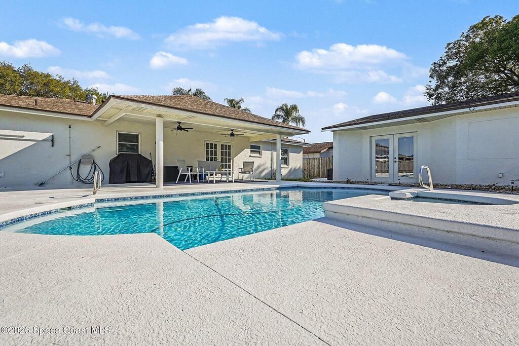 Tropical Oasis Awaits: Pool Home with Private Pool House. This meticulously maintained 3-bedroom, 2-bathroom offers the perfect blend of indoor comfort and outdoor entertainment. Step inside to find a light-filled home with the interior freshly painted. You'll love the renovated kitchen with crisp white cabinets, granite counters, and stainless steel appliances. Outside, your private oasis awaits: a fully fenced backyard centered around a a sparkling private pool with a built-in spa with a large covered patio perfect for entertaining. A unique standout is the separate pool house--perfect for a home office, gym, or guest house!Nestled in a quiet Melbourne neighborhood, this residence is designed for those who love the Florida lifestyle. Close to the Eau Gallie Arts District, Wickham Park, beaches, and major aerospace employers. Water heater 2025, HVAC 2023 and with a Roof Maxx transferrable warranty.
