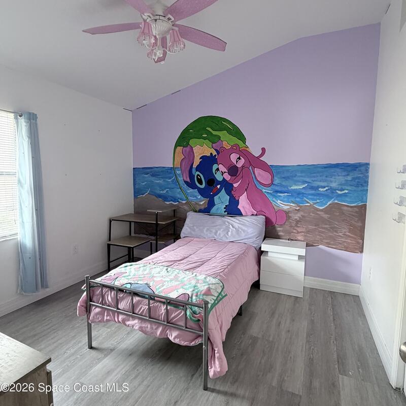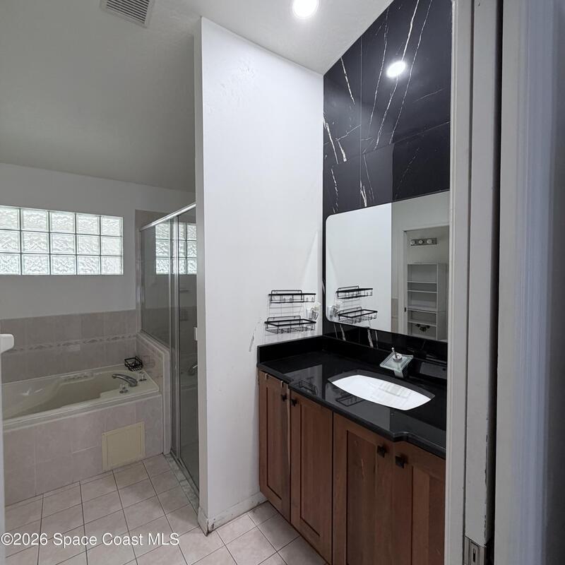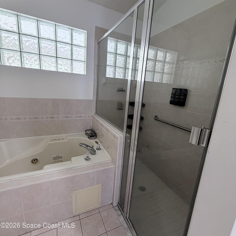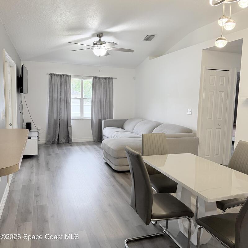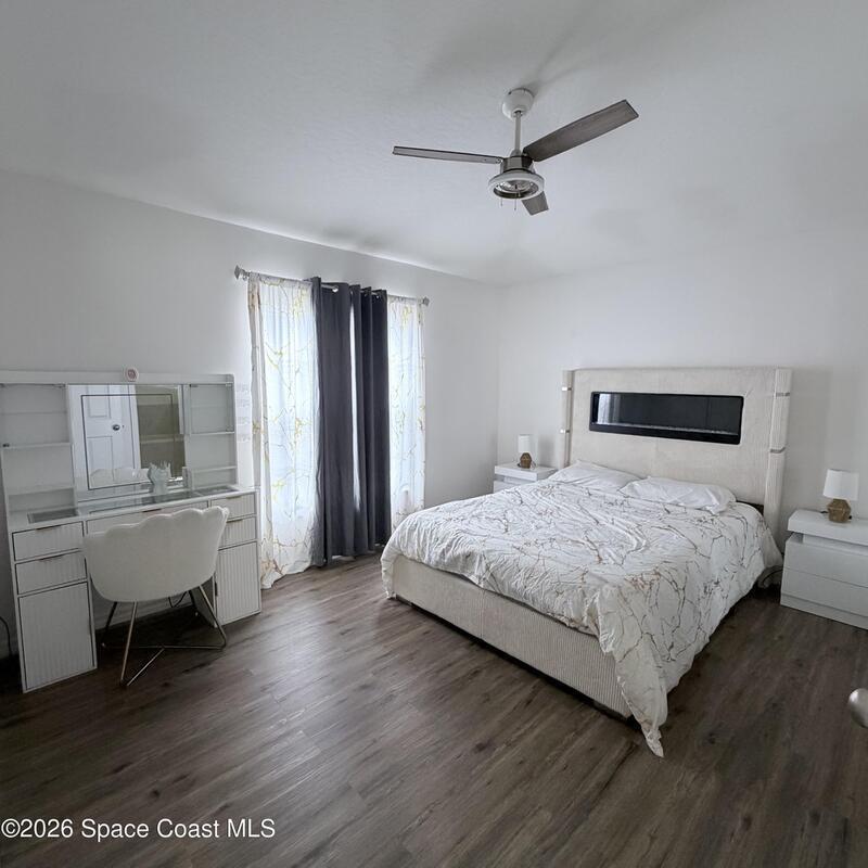 Major updates include a NEW ROOF (2025), NEW A/C (2025), and water heater (2022). Come add your personal touches to this well-maintained 3-bedroom, 2-bath CONCRETE BLOCK home located in a desirable area of NW Palm Bay on CITY WATER. The home features laminate flooring throughout and a spacious master suite with a large ensuite bathroom, jetted tub, and separate shower. Enjoy plenty of parking with a large driveway and 2-car garage. The enclosed sunroom provides additional space for relaxing or entertaining and adds valuable extra square footage. The large backyard offers great space for family activities. Solid bones, very clean, and well maintained--just ready for cosmetic updates to make it your own. Conveniently located close to shopping, dining, and everyday amenities. Schedule your showing today to see the potential this home has to offer!