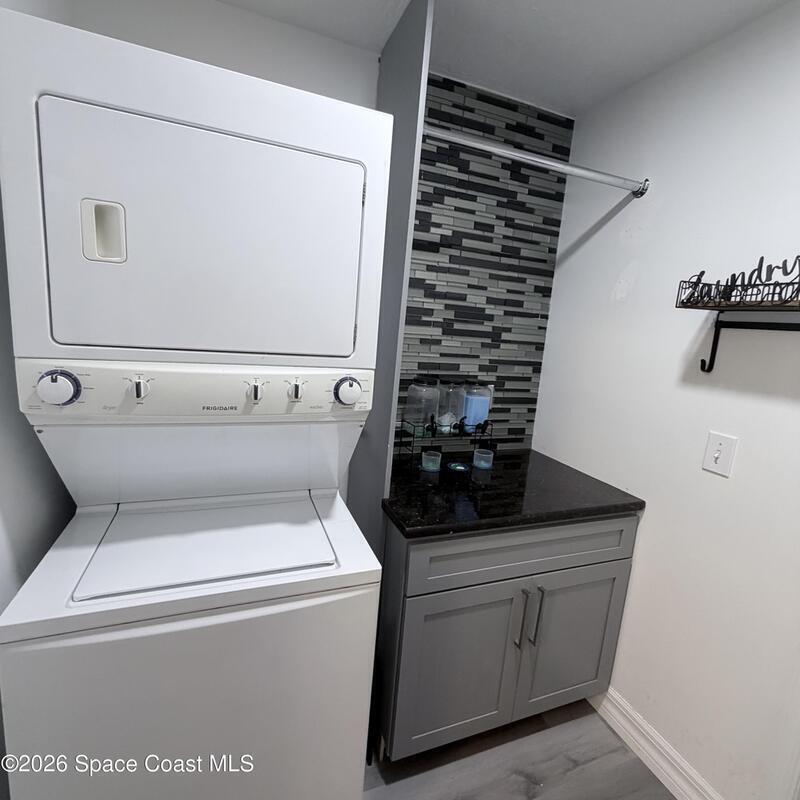 Dishwasher, Electric Oven, Refrigerator, Washer/Dryer Stacked