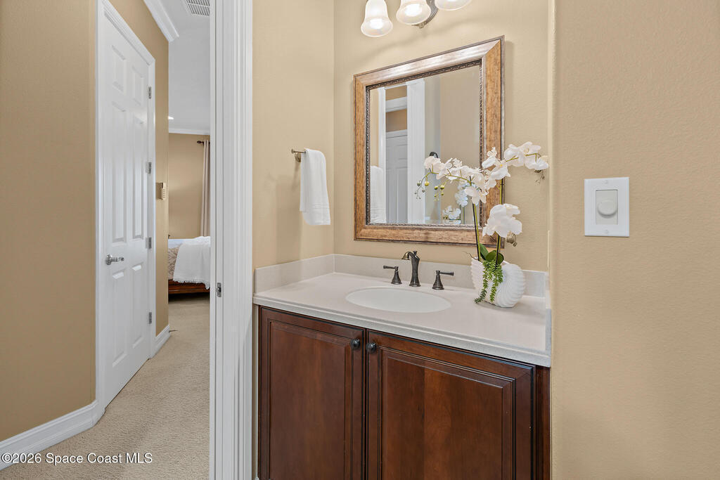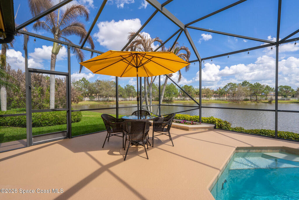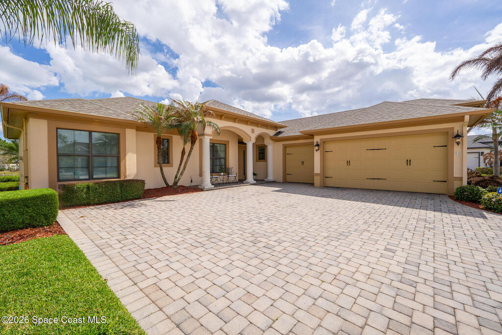 Don't miss this beautifully maintained 3-bedroom, 2-bathroom pool and spa home with a 3-car garage, located in the gated community of Eason Landing in the highly desirable golf cart community of Viera, Florida.Highlights Upfront: New Roof (2025) - Accordion hurricane shutters (2024) - Professional Exterior Paint (2023) - Gutters around the entire home.Welcome to this beautifully maintained 3-bedroom, 2-bathroom pool home with a 3-car garage, located in the gated community of Eason Landing within the highly desirable master-planned golf cart community of Viera, Florida.Situated on an oversized .26-acre lot, the home welcomes you with a long-paved driveway, 3-car garage, and impressive, lush landscaping that creates wonderful curb appeal. A covered front porch leads into an elegant foyer where beautifully designed wood columns and rich wood flooring immediately set the tone for the home's craftsmanship and style.From the moment you step inside, your eyes are drawn to the breathtaking