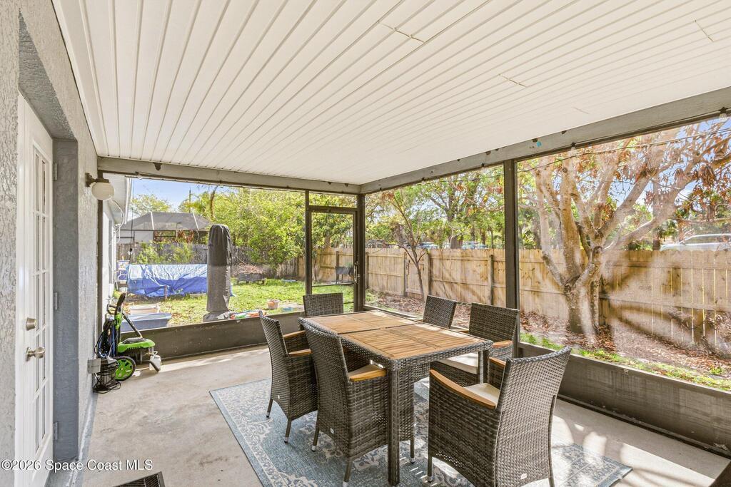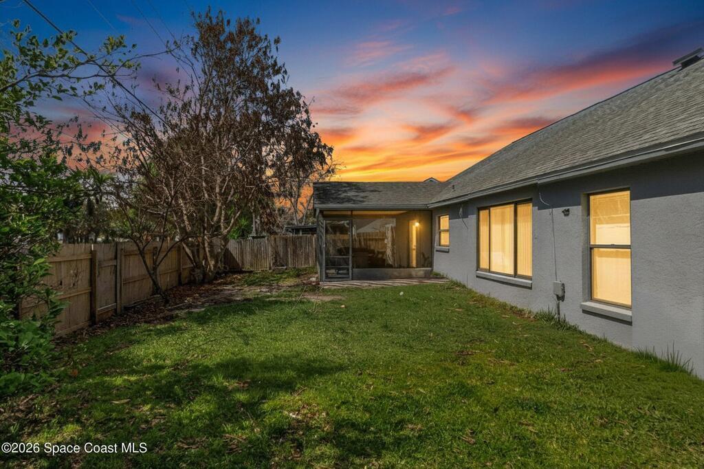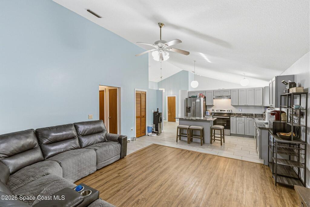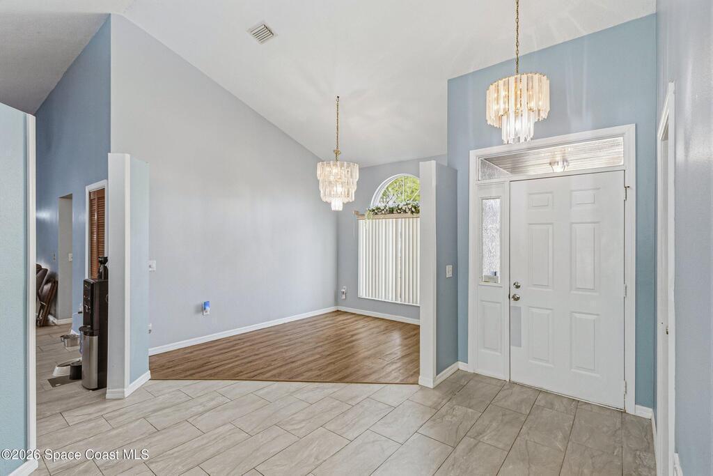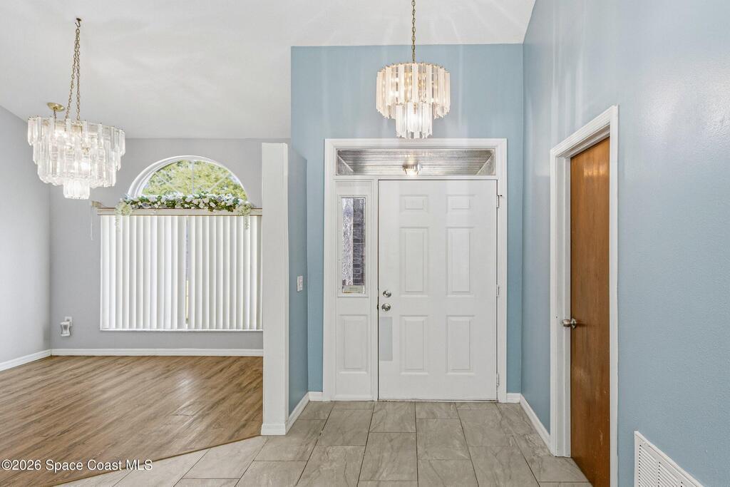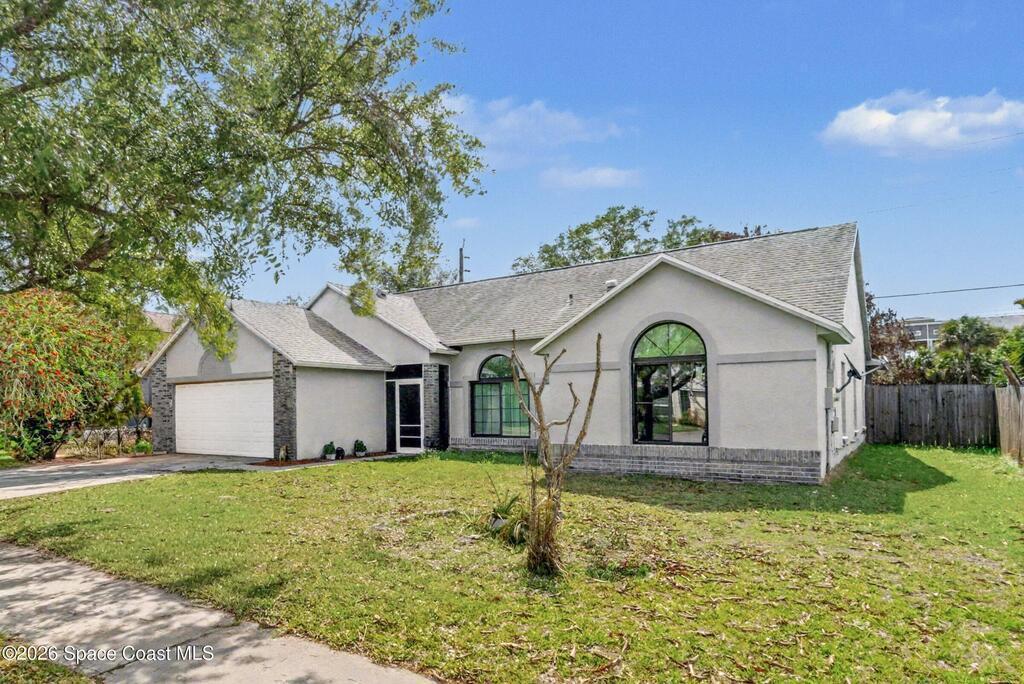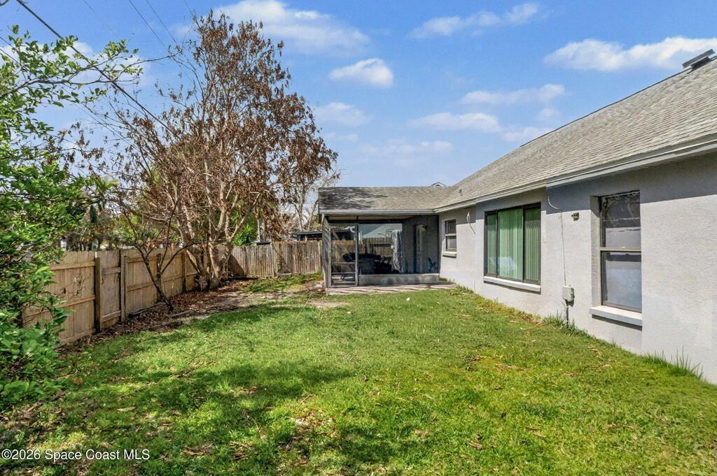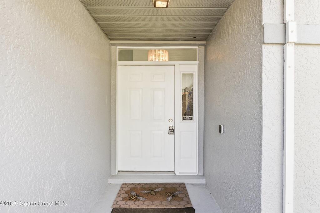 Welcome to this beautifully updated 1, 700 sq. ft. home with an open floor plan and generous living spaces. Conveniently located just 15 minutes from historic Cocoa Village, 20 minutes from the beaches, and 45 minutes from Orlando's International Drive. This home has been thoughtfully improved with a 2019 roof, 2023 A/C, and 2024 water heater. The kitchen was fully updated in 2024 with new cabinets, appliances, and a stylish center island. New flooring enhances the foyer, kitchen, bathroom, and living room, while newer window treatments add a polished touch to the kitchen and living area. The guest bath was upgraded in 2024 with new cabinetry and countertops. The primary bath includes updated plumbing, an updated shower, a new bidet, double sinks, and a relaxing garden tub. Additional features include a new water softener system, new back porch screening, and a doorbell camera. Step outside to a backyard filled with fruit trees and plants, including loquat, mango, mandarin, lemon,