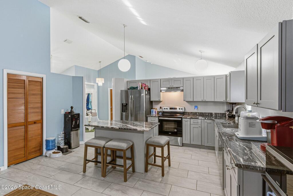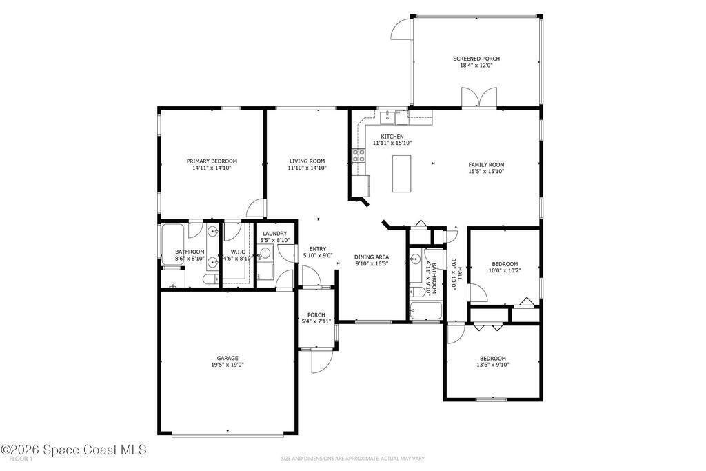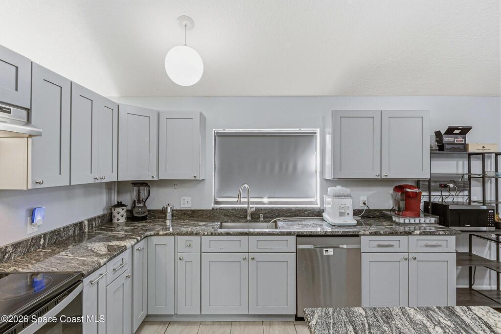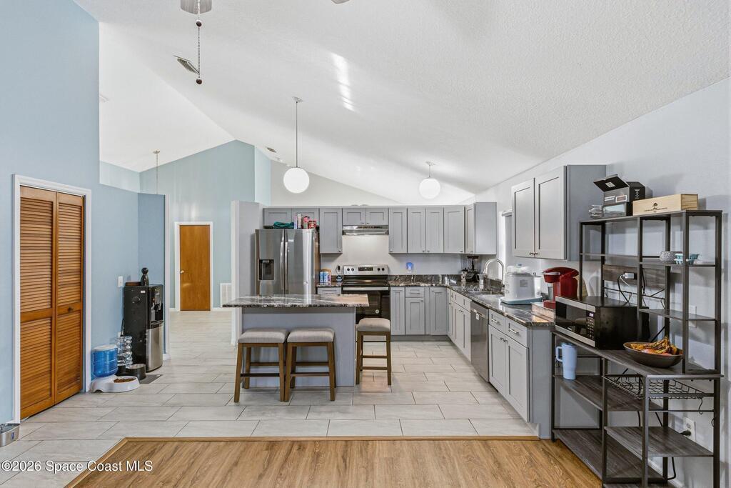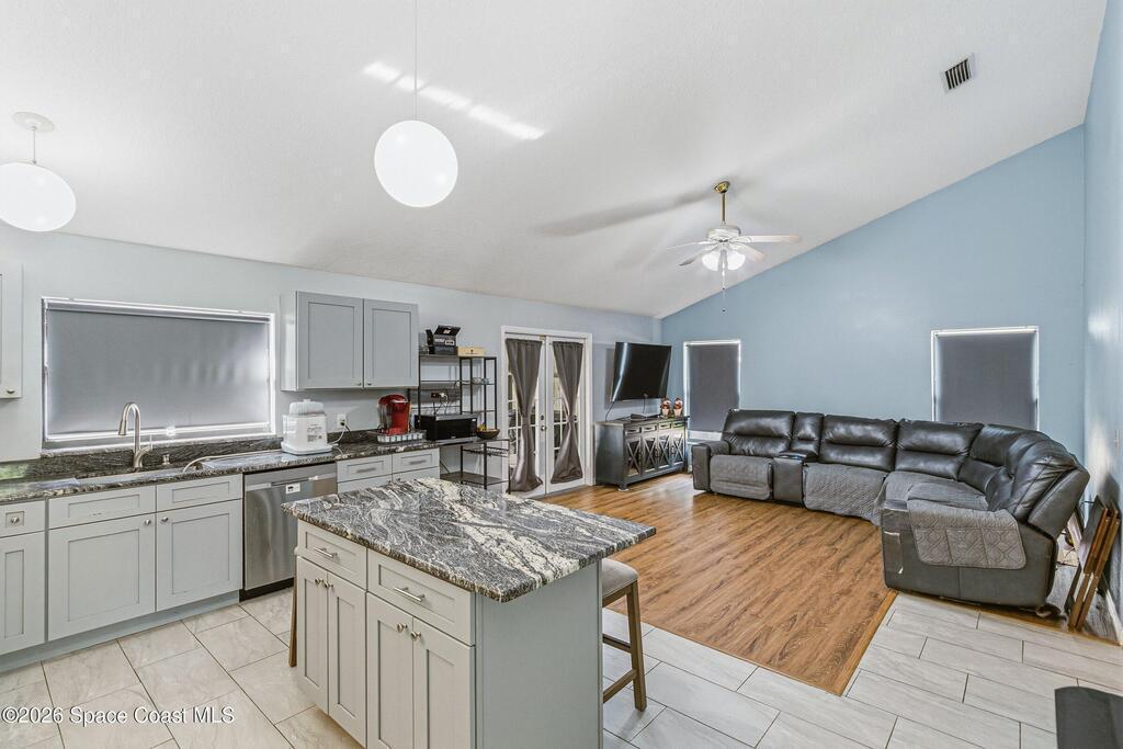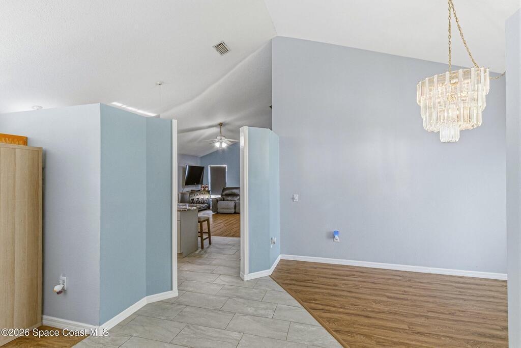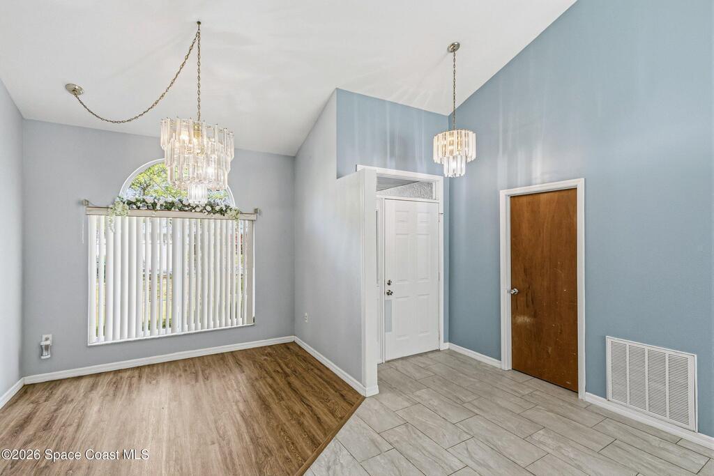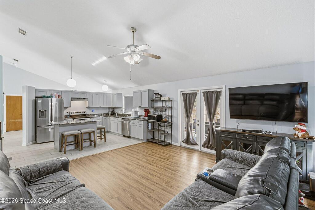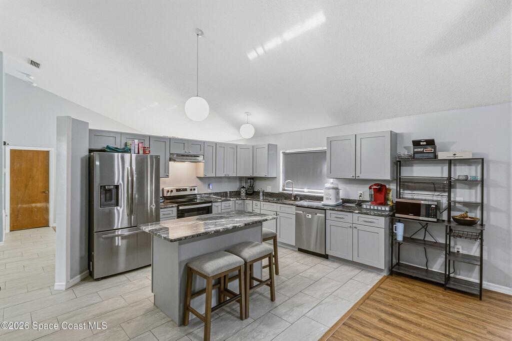 Welcome to this beautifully updated 1, 700 sq. ft. home with an open floor plan and generous living spaces. Conveniently located just 15 minutes from historic Cocoa Village, 20 minutes from the beaches, and 45 minutes from Orlando's International Drive. This home has been thoughtfully improved with a 2019 roof, 2023 A/C, and 2024 water heater. The kitchen was fully updated in 2024 with new cabinets, appliances, and a stylish center island. New flooring enhances the foyer, kitchen, bathroom, and living room, while newer window treatments add a polished touch to the kitchen and living area. The guest bath was upgraded in 2024 with new cabinetry and countertops. The primary bath includes updated plumbing, an updated shower, a new bidet, double sinks, and a relaxing garden tub. Additional features include a new water softener system, new back porch screening, and a doorbell camera. Step outside to a backyard filled with fruit trees and plants, including loquat, mango, mandarin, lemon,