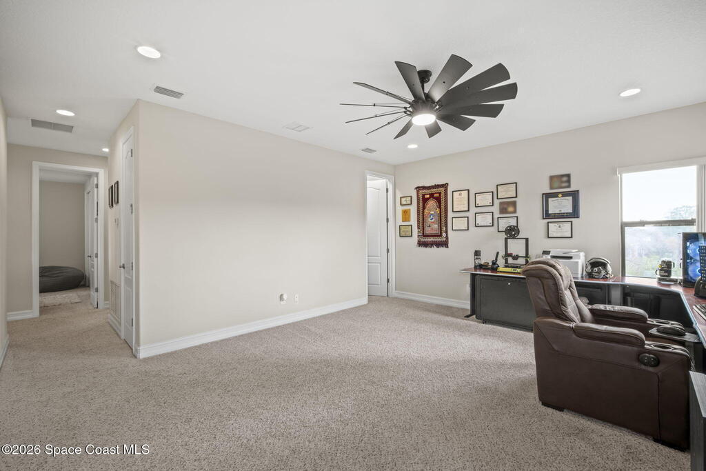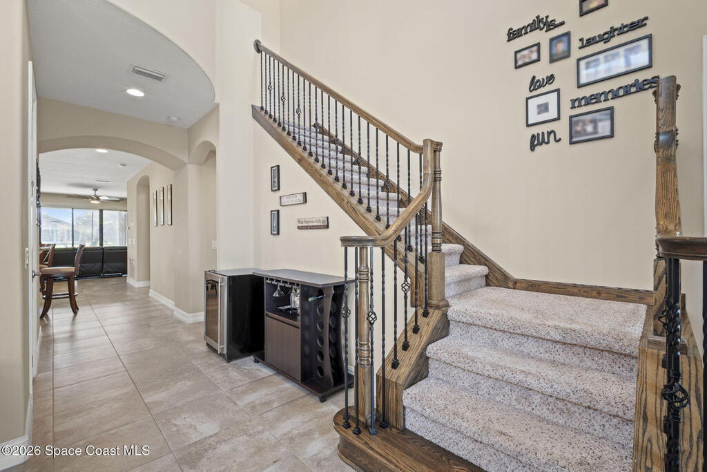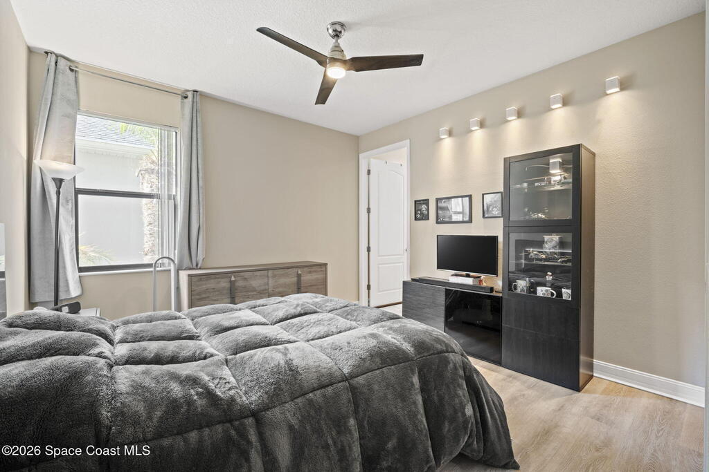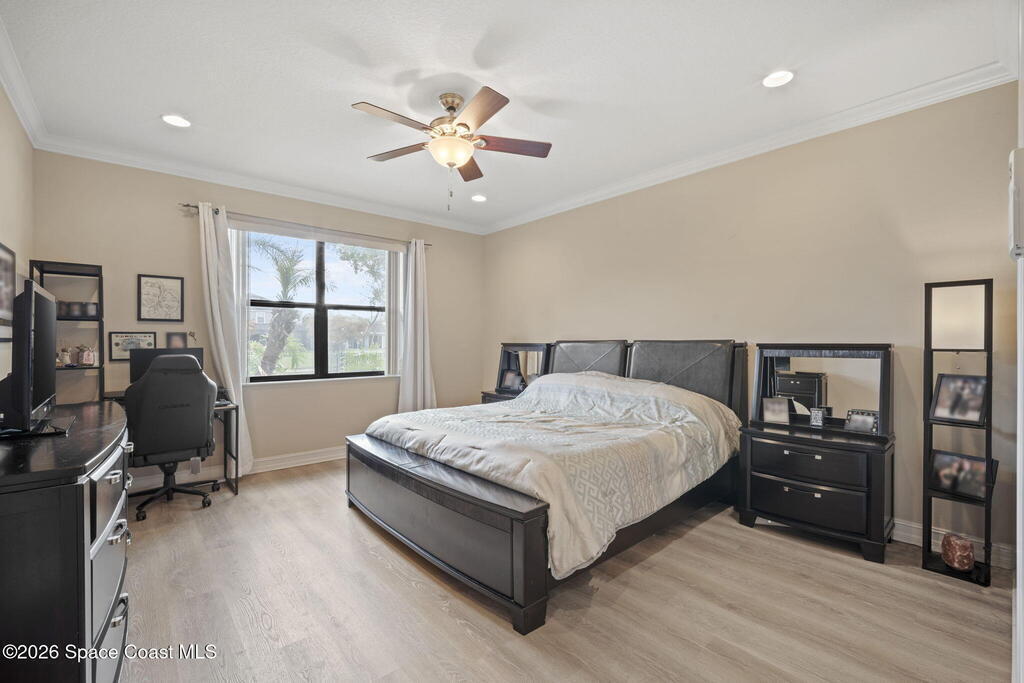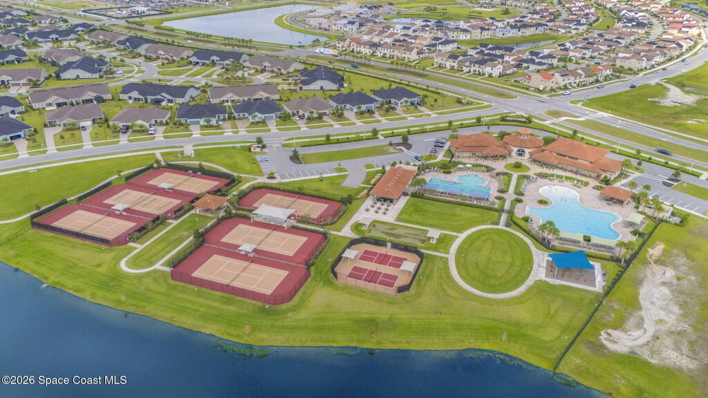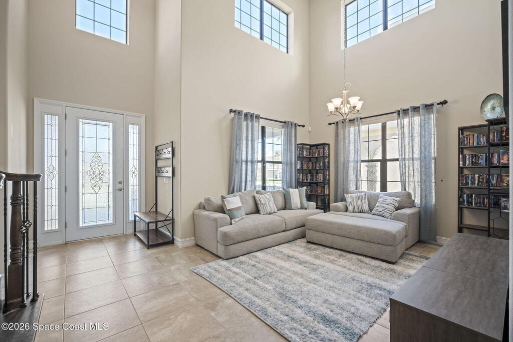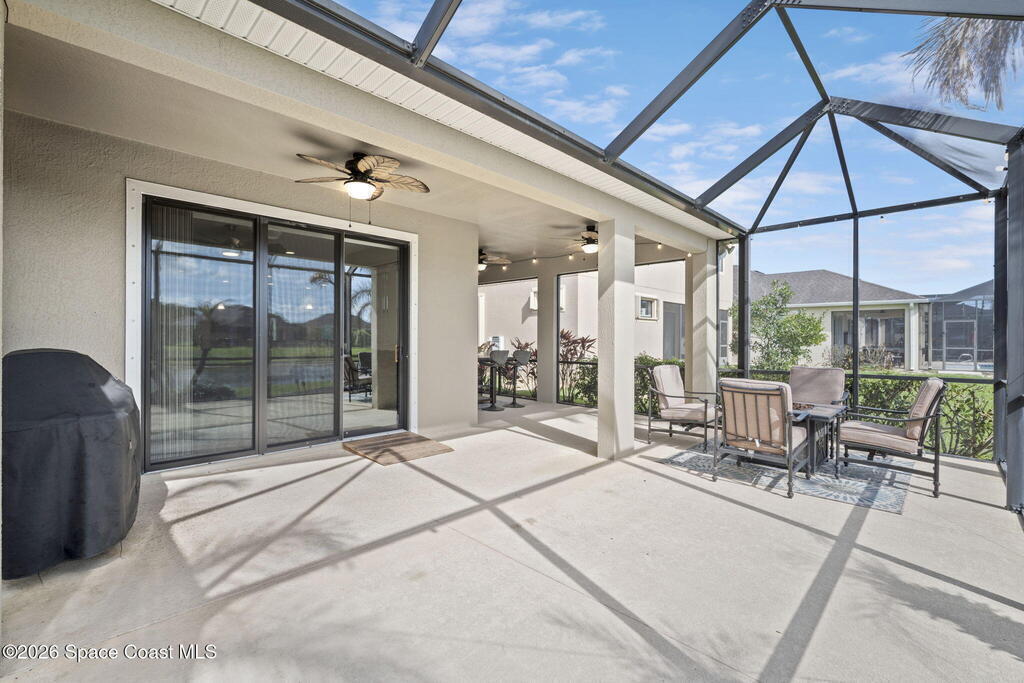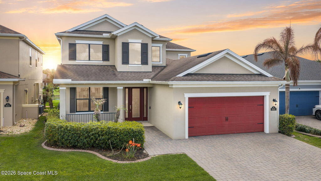Welcome to this stunning two-story lakefront home in the highly desirable Strom Park community of Viera. Offering over 3, 100 SQFT of living space under air, this beautiful lakefront residence features 4 spacious bedrooms and 3.5 bathrooms, designed with both comfort and elegance in mind. Both Master and guest suite are on the first floor! The gourmet kitchen is perfect for entertaining, with generous counter space, stainless steel appliances with gas stove, and an open layout that flows seamlessly into the living areas. Step outside to your extended covered, screened-in porch and enjoy peaceful lake views, ideal for morning coffee or relaxing evenings. Located just minutes from The Avenues in Viera, Costco, popular dining, local dog parks, shopping, schools, and hospital, this home combines luxury living with convenience. Most locations are all golf cart accessible! Also, there are impact rated windows at the front of the home and 2nd floor! Roof, AC, and water heater are 9yrs old.