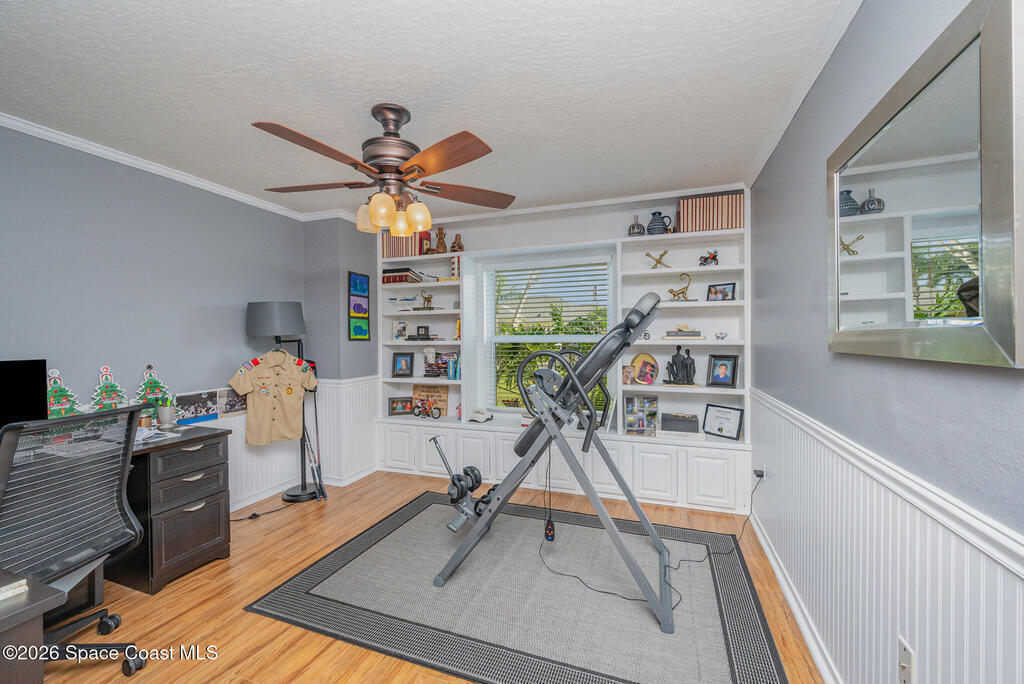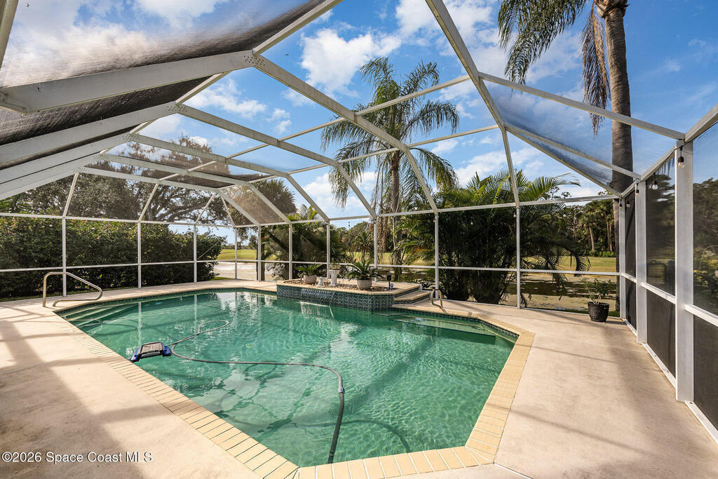 Welcome to easy Florida living in a beautiful golf course community! This Spacious 4/bedroom, 2.5/bath home with a dedicated office offers plenty of room for both the relaxing and working from home. The open layout provides comfortable living spaces, while the additional office is perfect for remote work, studying, or a quiet retreat. Step outside and enjoy your private screened-in pool overlooking the golf course, creating the perfect setting for your morning coffee, weekend BBQ, or unwinding after a long day. The backyard offers peaceful views and plenty of space to enjoy the Florida lifestyle year-round. Conveniently located near the Space Coast's growing aerospace industry, you'll be just minutes from NASA, SPACEX and Blue Origin. The beach is about 15 minutes away and Orlando airport about a 45-minute drive. This home offers the perfect combination of space, location, and the relaxed Florida lifestyle.